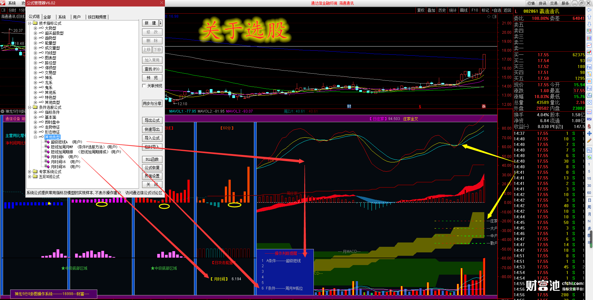 经过上述简单学习,我们了解了股票上涨的基因,所以选股就比较简单。比如,知道5行上涨条件,怎么样精加其他条件,比如加上月时间值选股,这样选出来的股票周期低安全可靠加上短线上涨,那么,这样的股票的短线非常暴力,上涨速度非常快。如果加日周月周期排成,这样更好,等等,希望你懂的--------
