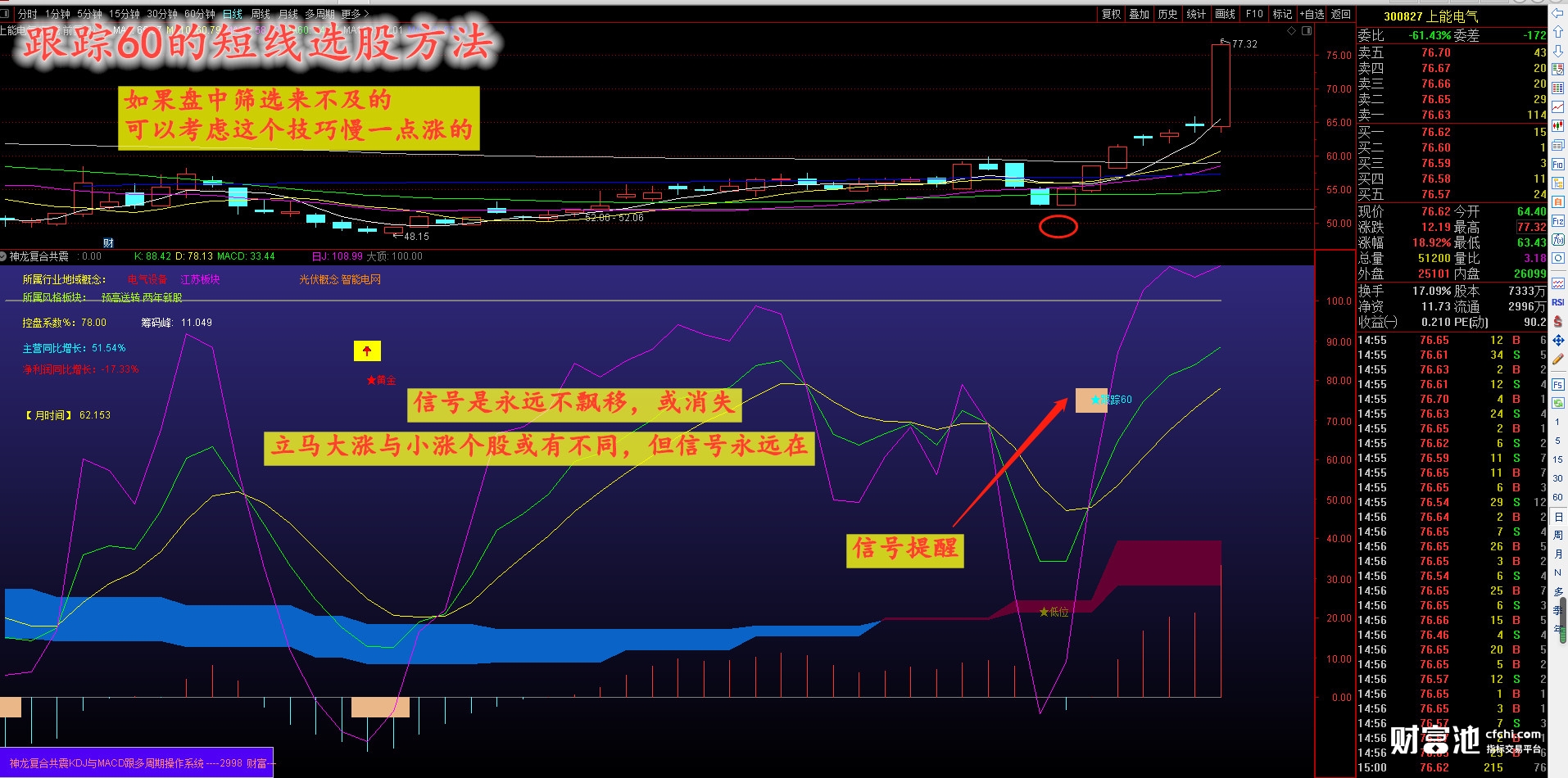 郑重声明:股市具有不确定性,个股走势是无法预测的。公式软件描述中的案例截图仅代表过去,仅供参考学习研究之用,不构成投资建议或未来保证,也并不能代表未来,依此操作,责任自负。股市有风险,入市需谨慎。