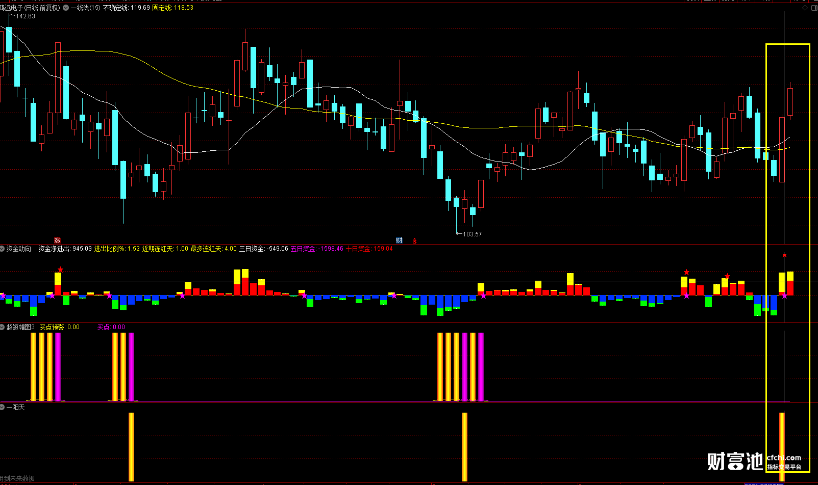 可以特别关注一下出现星号的信号点,一般可以视为关注建仓点,但也要结合红黄柱子比例判断。这个大家在以后实操的时候用多了就会有经验了。