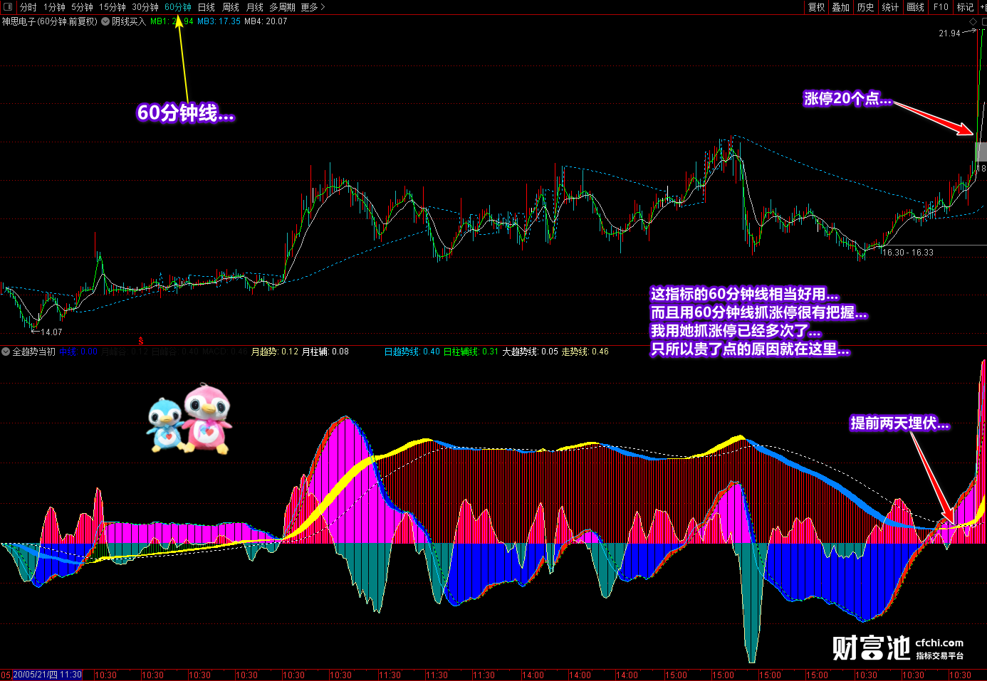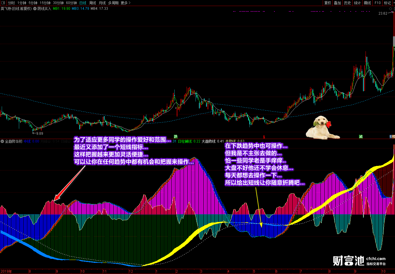 指标的一些使用技巧和说明已经在截图中进行了标注,这里不再复核。指标不含有任何未来函数,收到指标后同学们可以检验查证。还是那句话,指标为可复制品,一旦订阅概不退订。如果你看不懂指标或不会使用指标最好不要购买,以免拿到了指标浪费了银子。