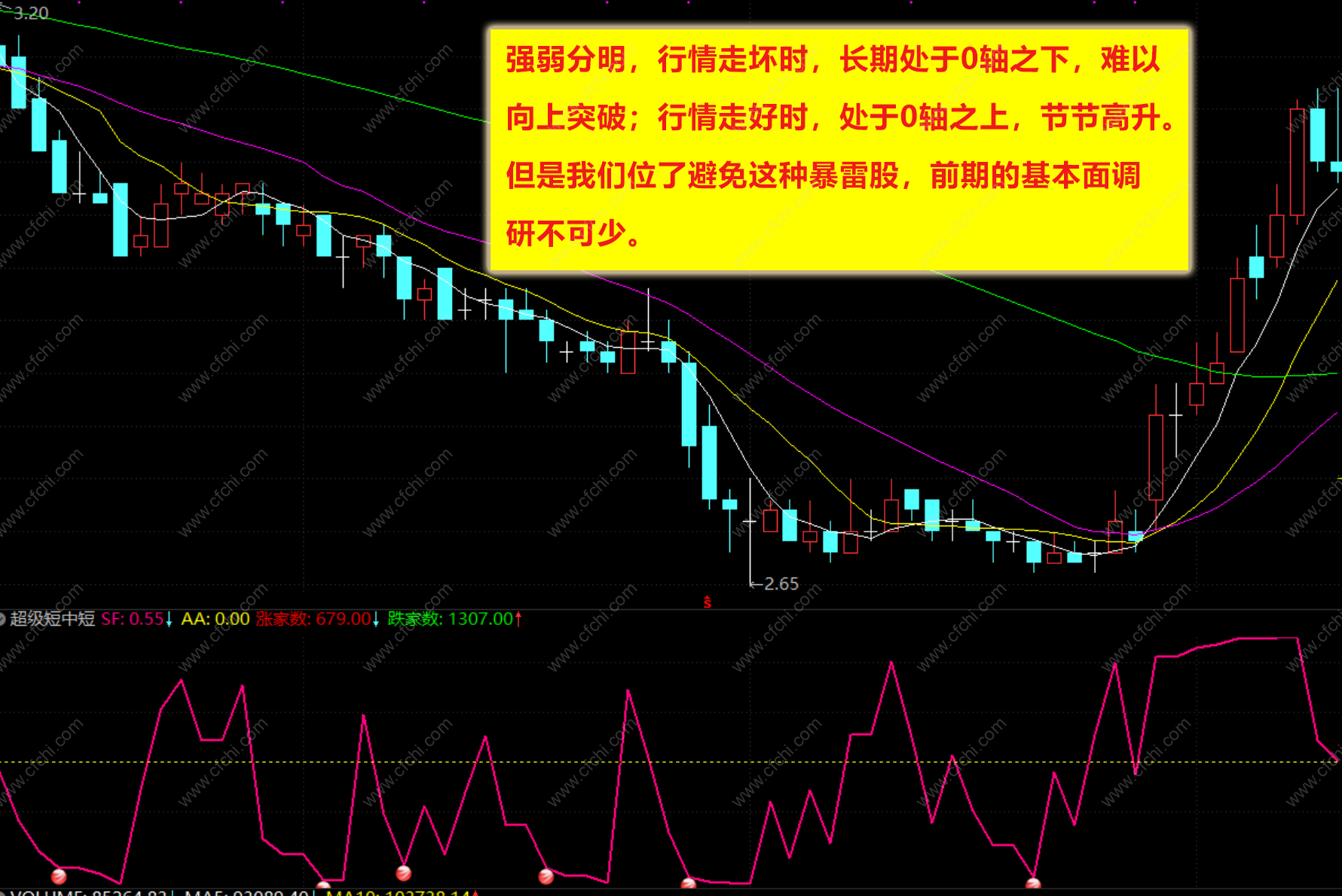 所以用这个指标也是一样,讲究耐心,虽然指标的分析是短线指示,但是我们在操作的时候带着长线的思维。在选股阶段,充分了解好该股的基本面信息,避免买到暴雷股,再利用此指标,事半功倍。