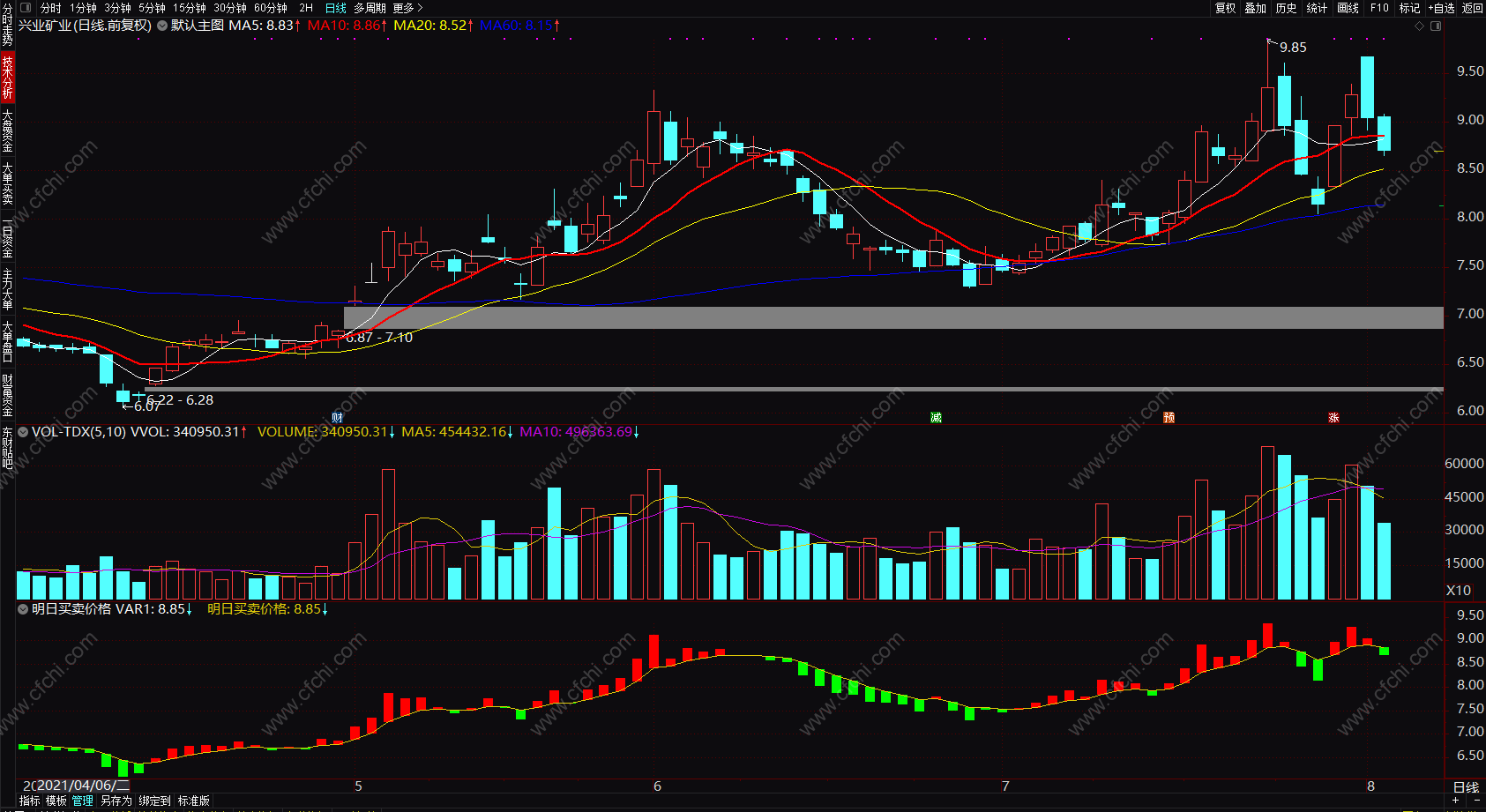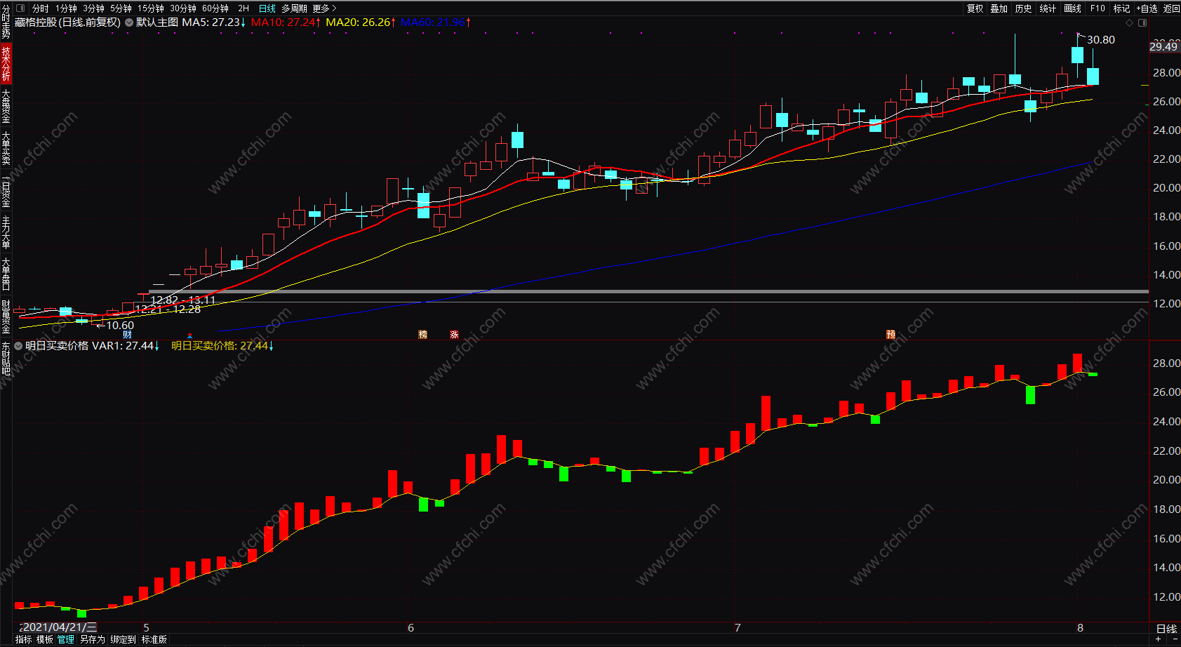 (【源码贴图】通达信买卖点指标公式 短线红买绿卖 精准明日买卖价格副图)