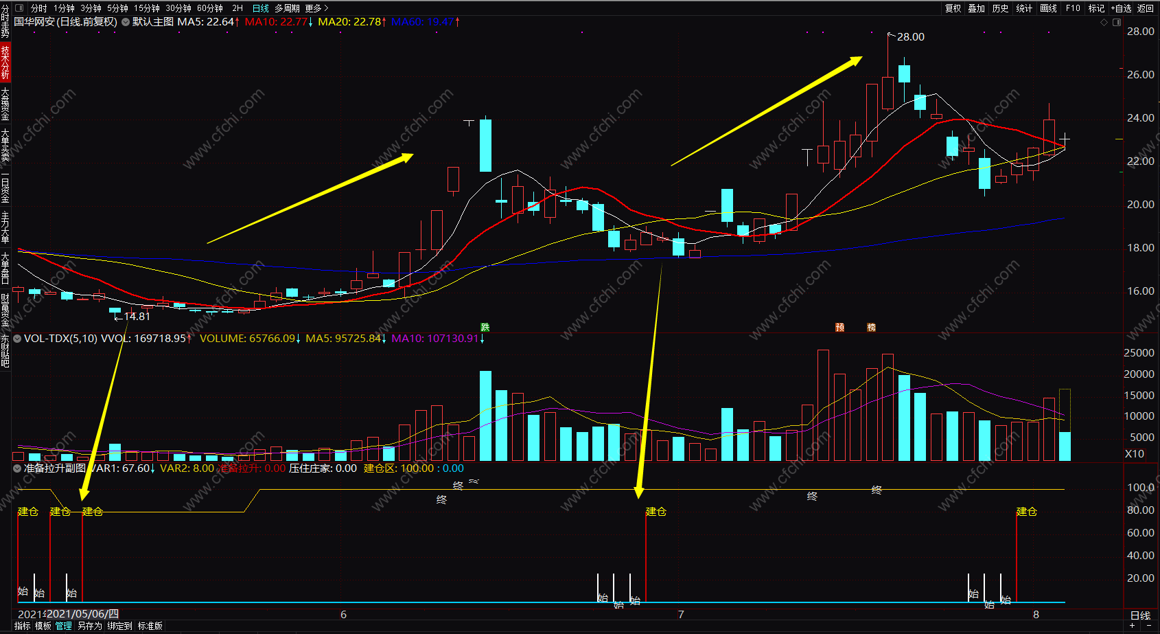 准备拉升: IF(CROSS(VAR1,VAR2),80,0),STICK,COLOR0000CC,LINETHICK2;