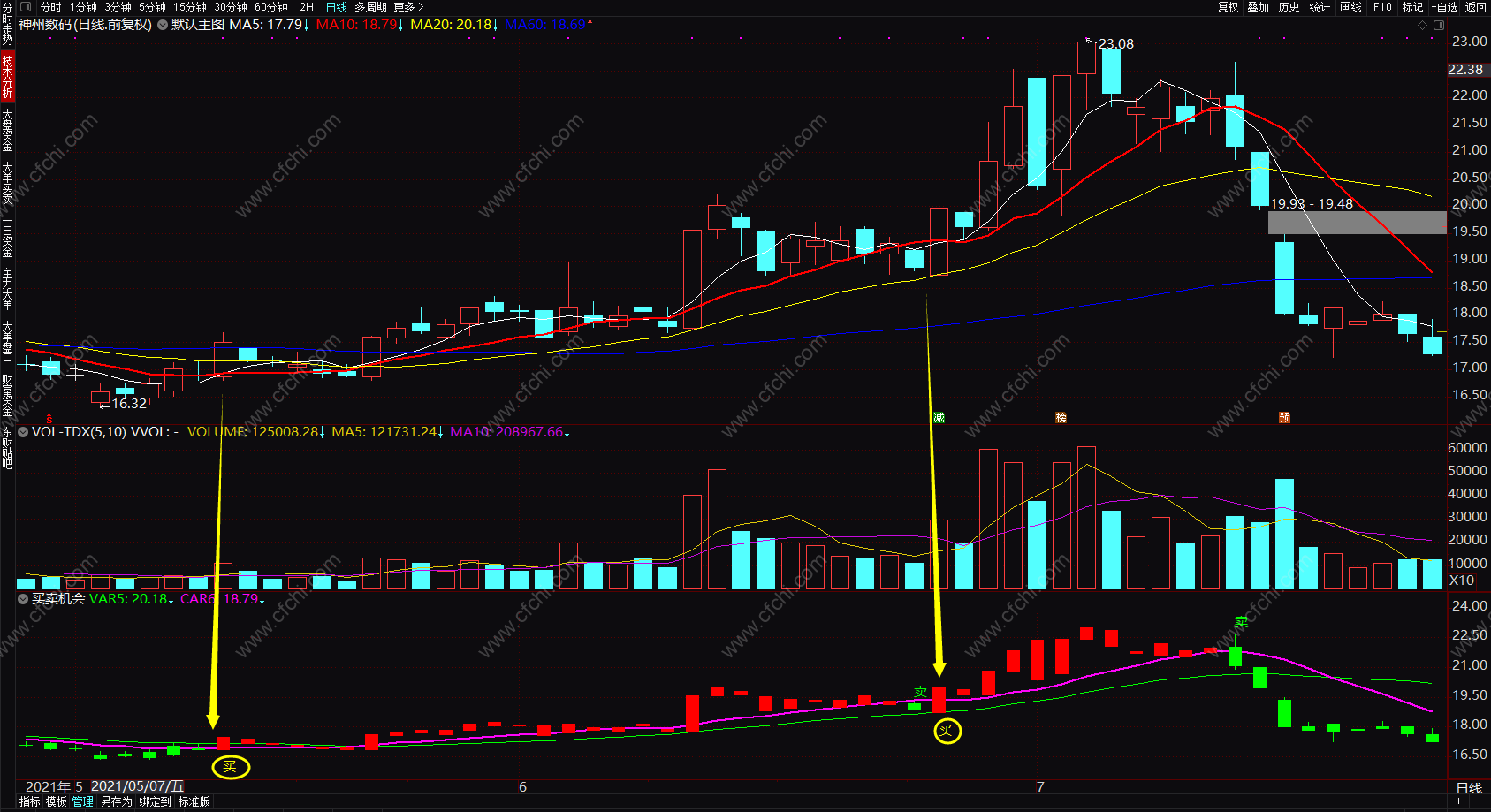 指标中,自动显示买卖时点,使用者照此操作即可。