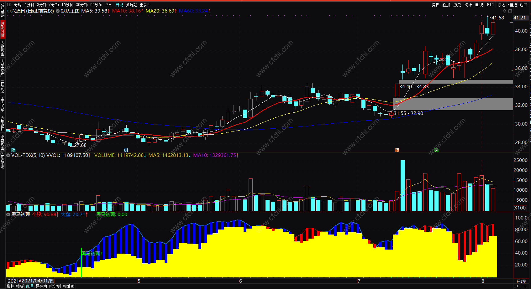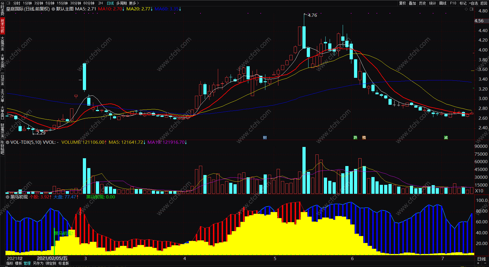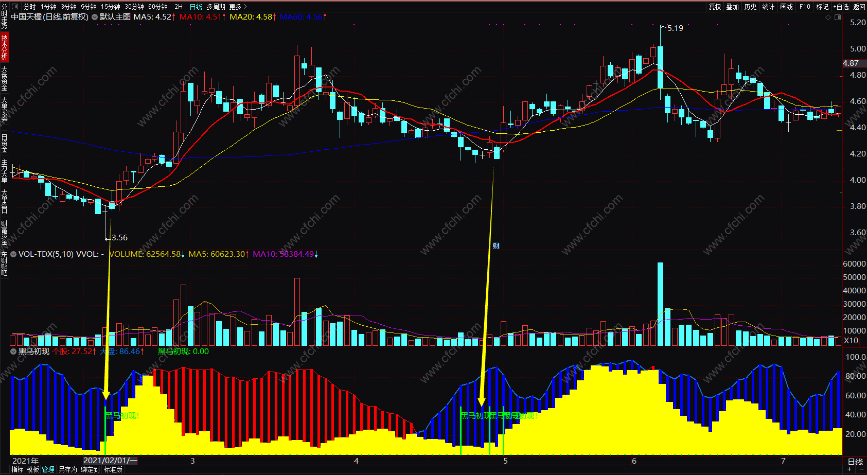 (黑马初现选股指标 最牛趋势顶底指标公式通达信免费指标 副图 源码 贴图)