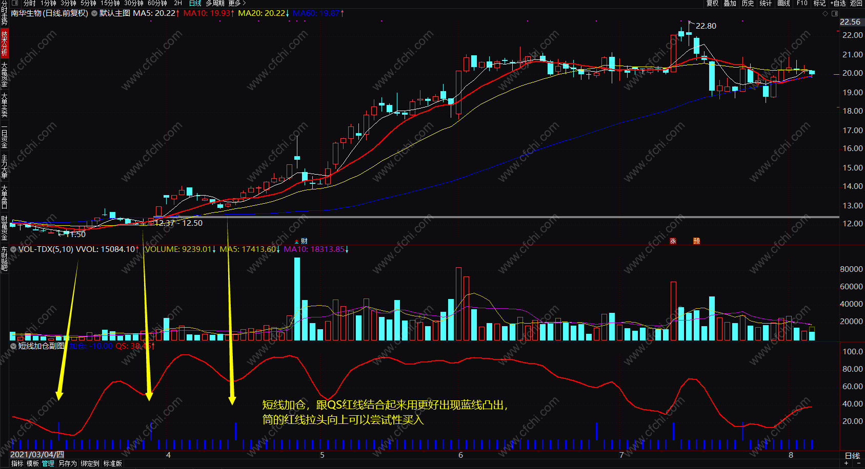 短线加仓,跟QS红线结合起来用更好出现蓝线凸出,筒的红线拉头向上可以尝试性买入