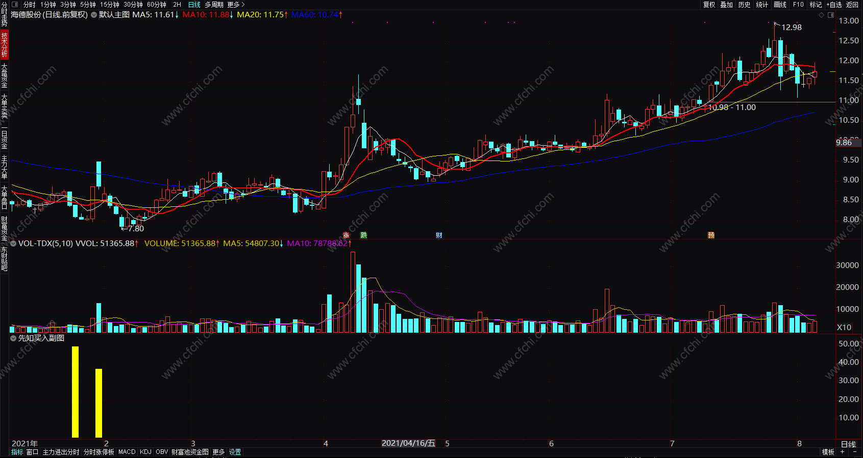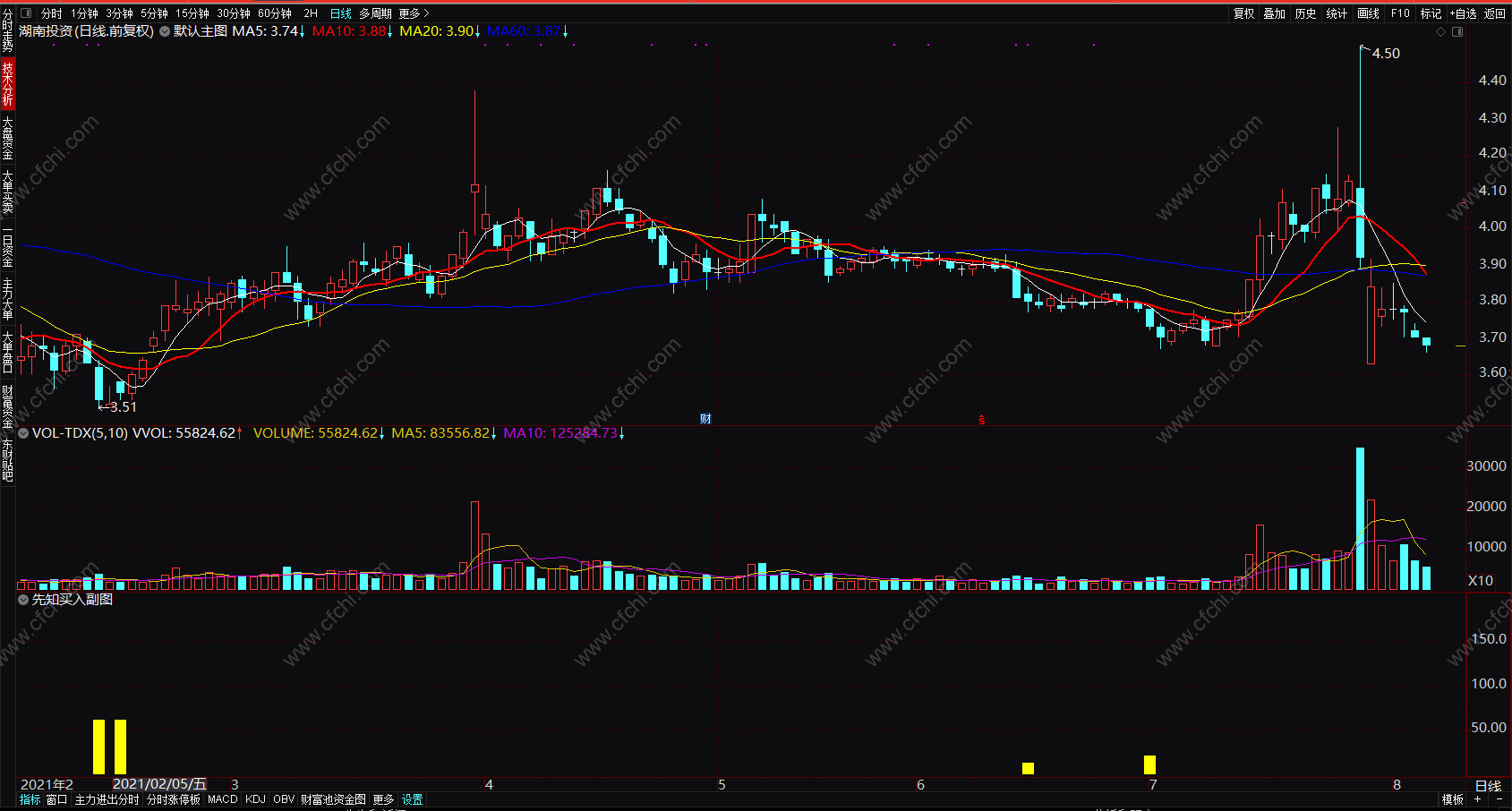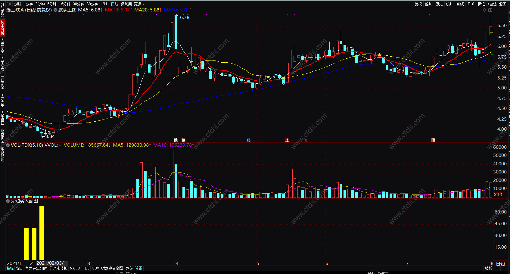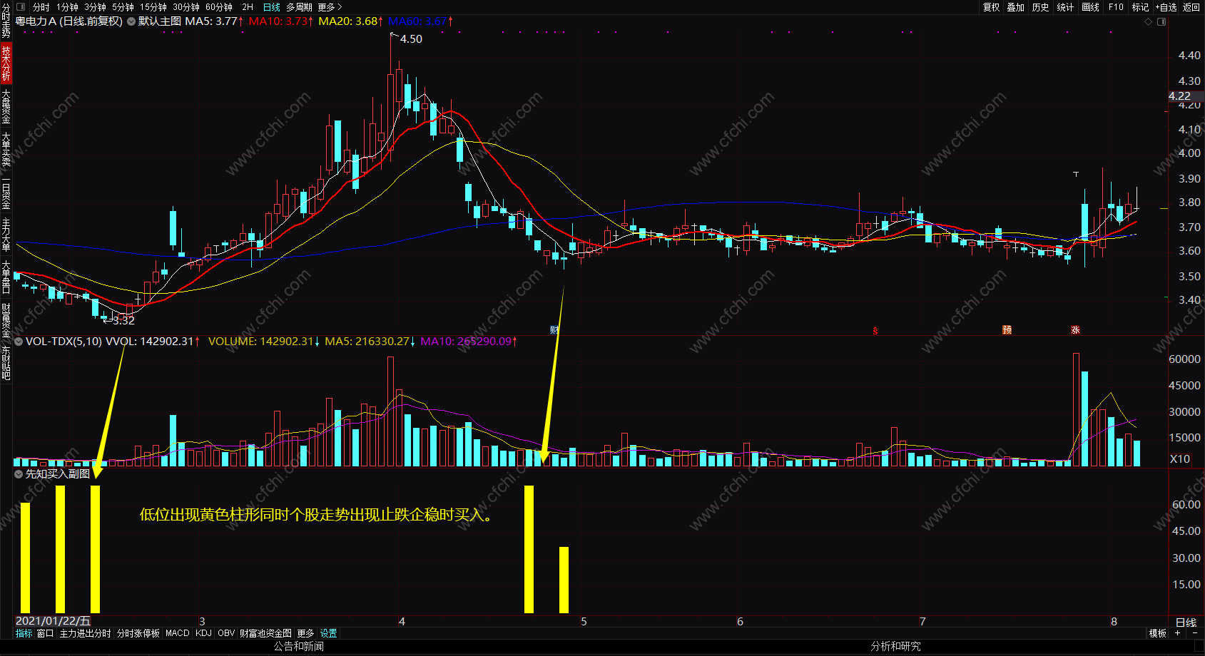 低位出现黄色柱形同时个股走势出现止跌企稳时买入。