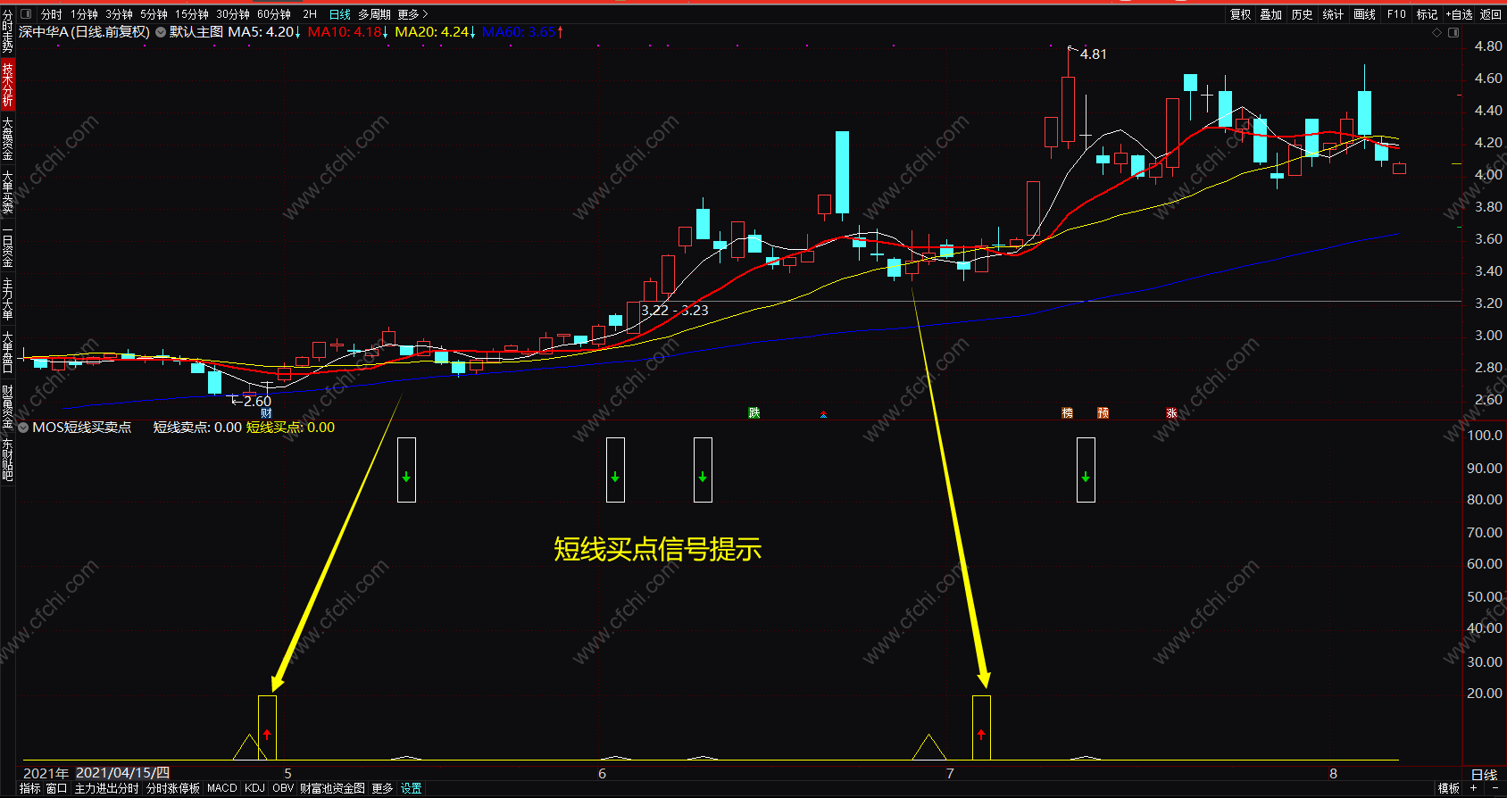 MOS量化短线买卖点交易系统,适合大盘和个股,属于短线级别的交易系统。当出现黄色箭头和红色箭头,则代表出现短线买点信号。出现绿色箭头则代表短线卖点信号。因为属于短线级别的交易,所以信号会比较频繁,可作为大盘和个股机会辅助判断使用。