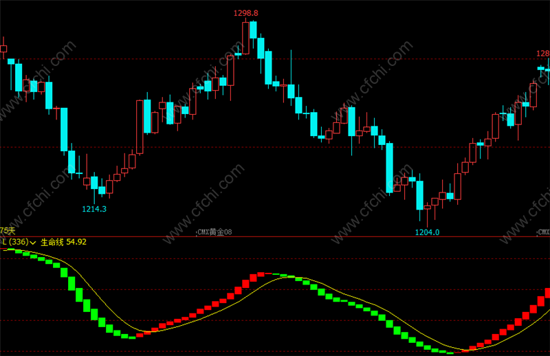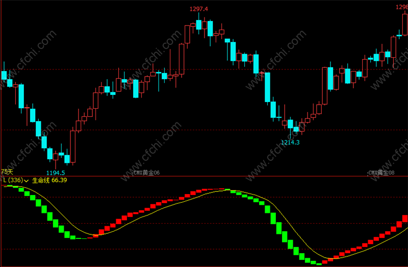 (文华财经指标公式多空买卖点买卖指标自动提示买卖点的期货软件量能波段副图)