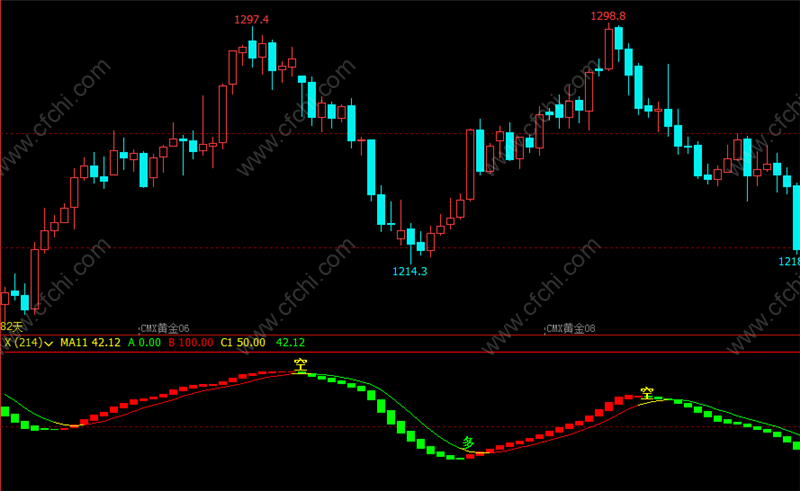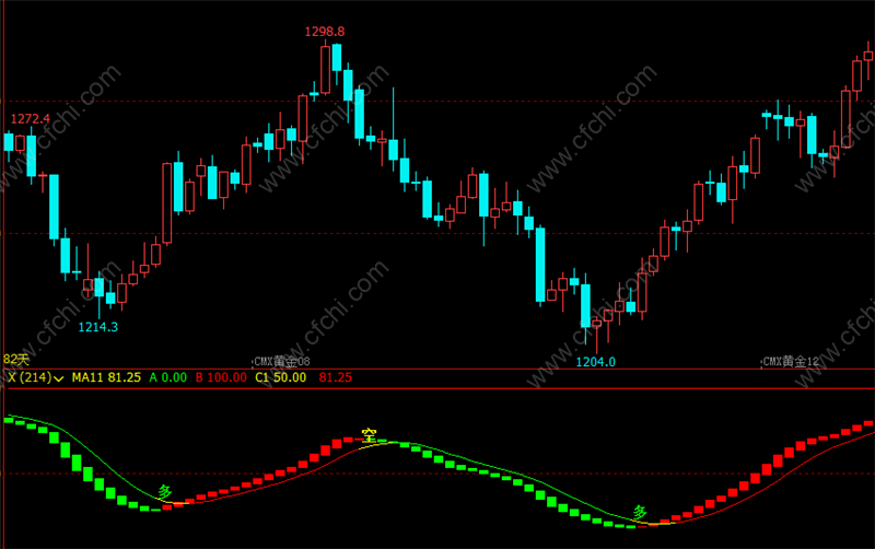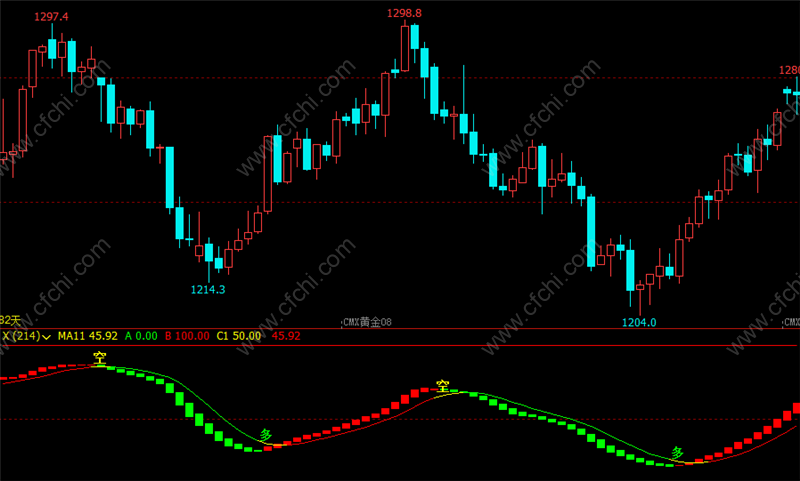 (文华财经指标公式多空买卖点买卖指标自动提示买卖点的期货软件量能波段王)