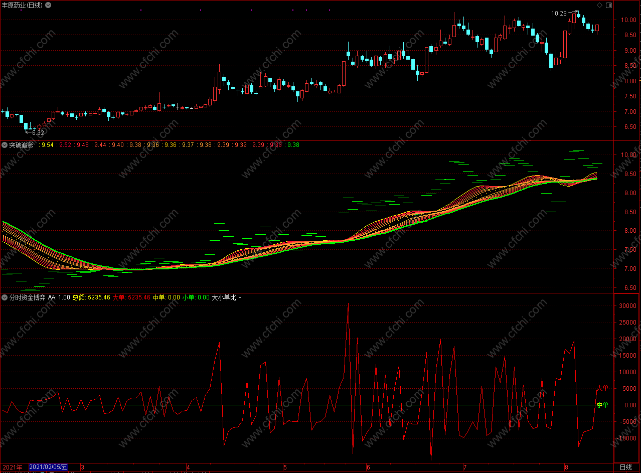 (大单资金上穿中单资金买入 通达信分时资金博弈指标公式 副图 源码)
