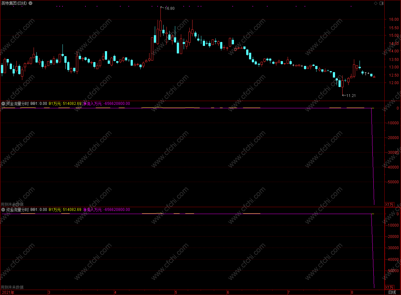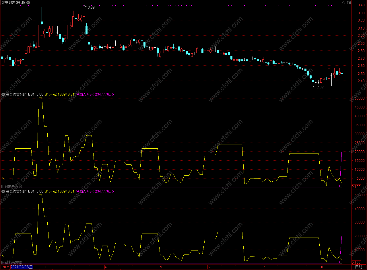 【通达信副图指标】资金流量分时指标 源码 贴图