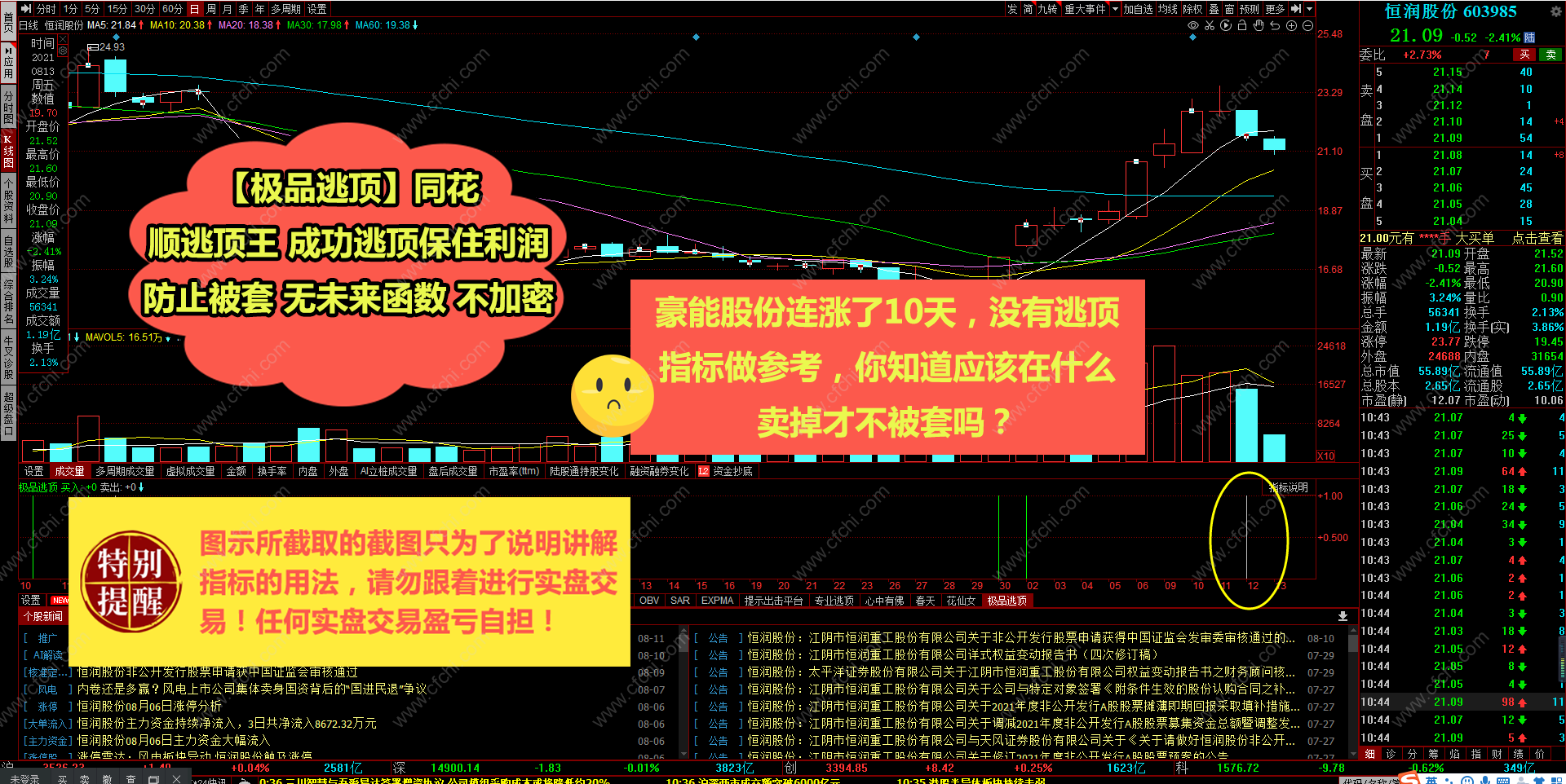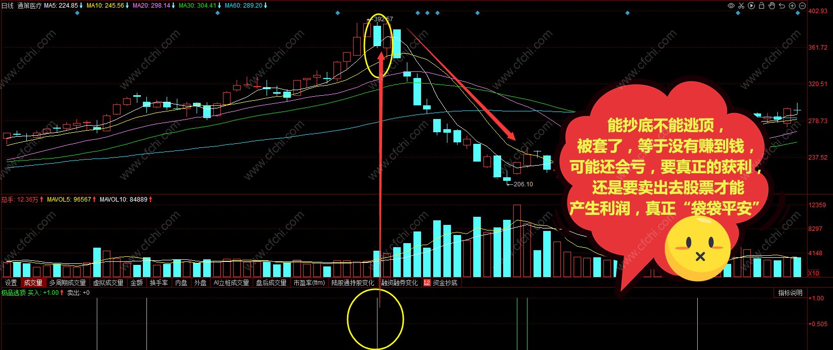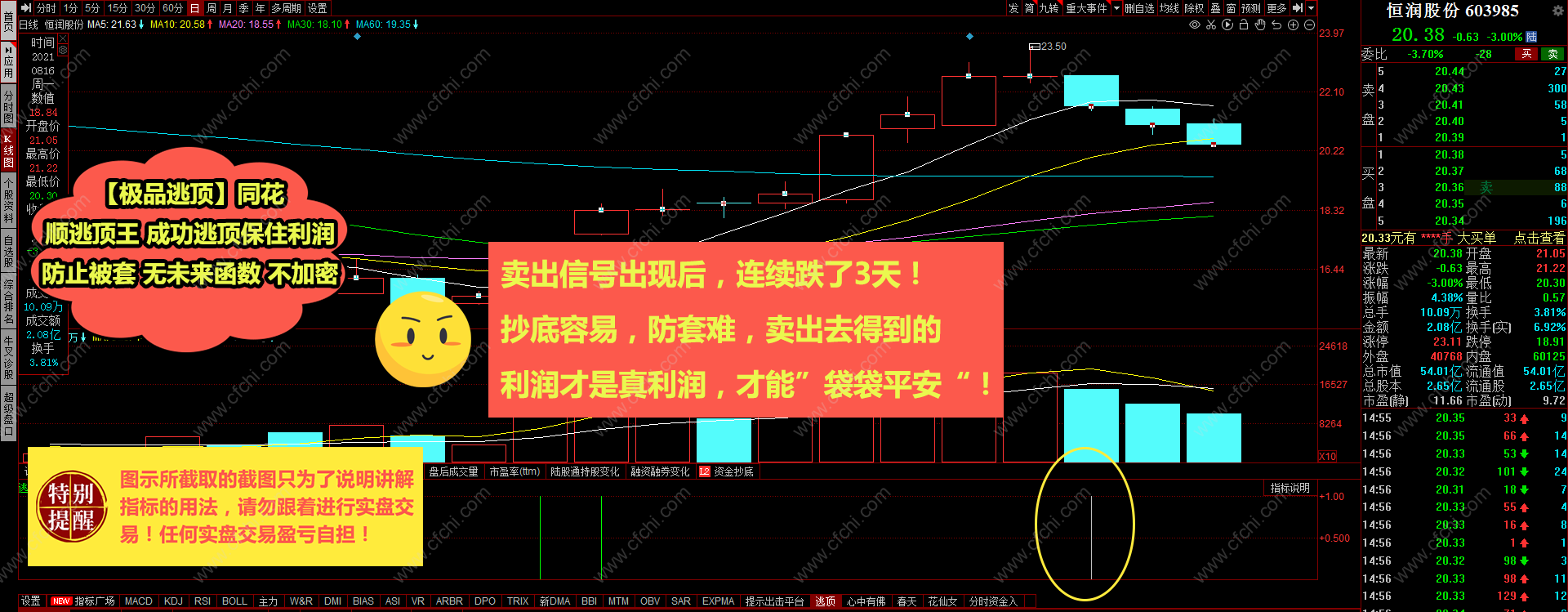 (【极品逃顶】同花顺逃顶王 成功逃顶保住利润防止被套 无未来函数 不加密)