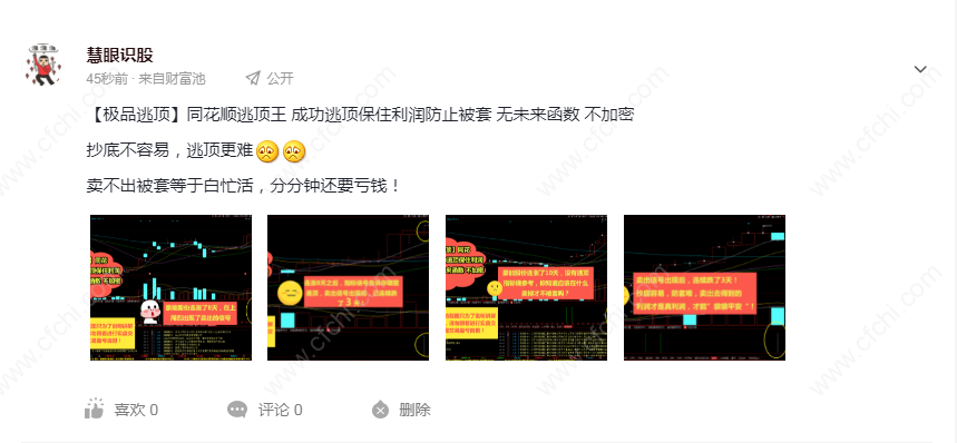 郑重声明:股市具有不确定性,个股走势是无法预测的。公式软件描述中的案例截图仅代表过去,仅供参考学习研究之用,不构成投资建议或未来保证,也并不能代表未来,依此操作,责任自负。股市有风险,入市需谨慎。