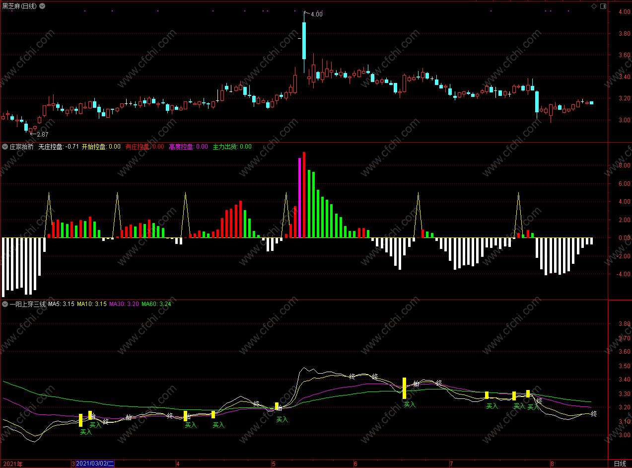 三线擒牛 通达信一阳上穿三线指标公式 副图 无未来 源码