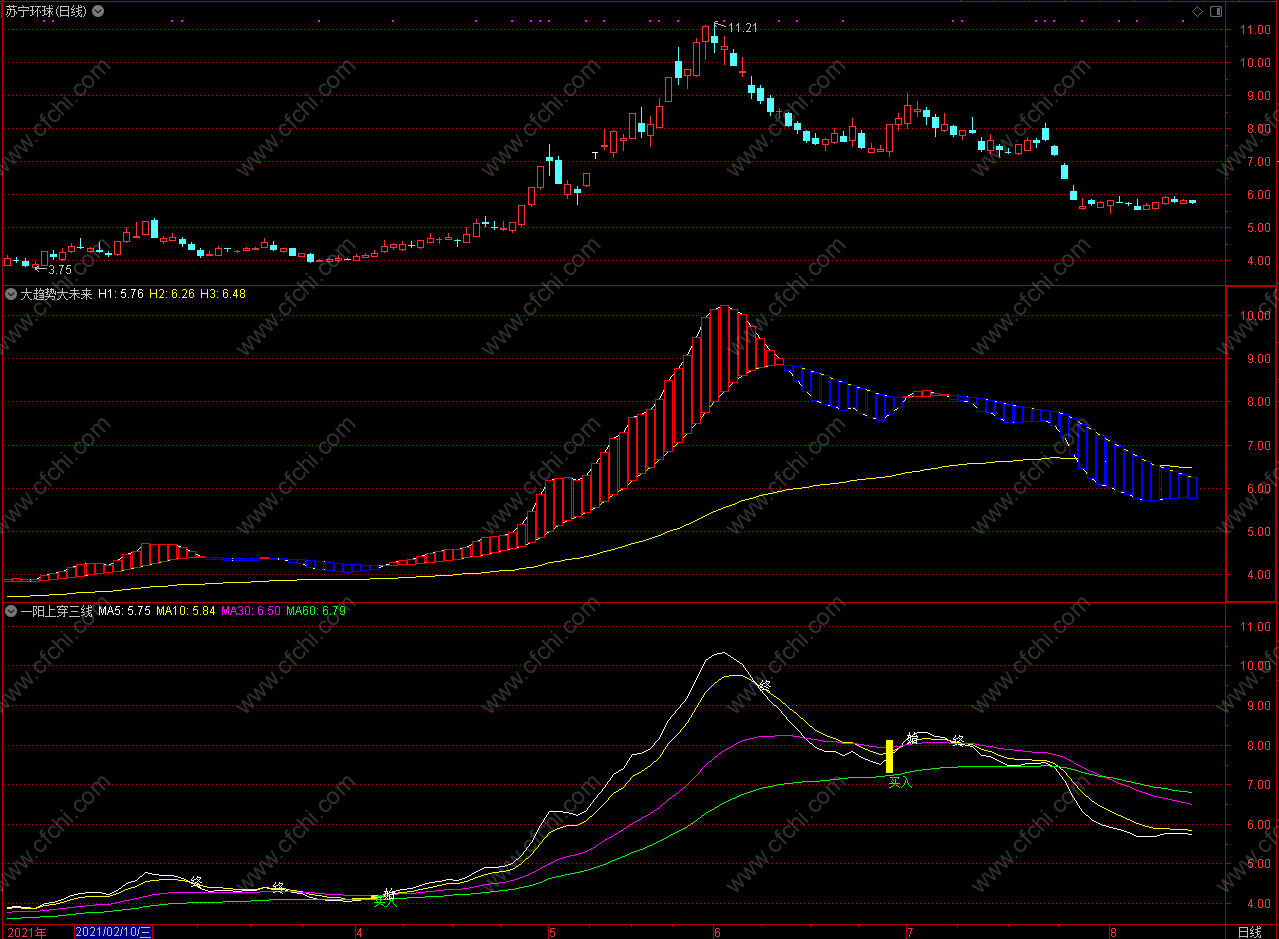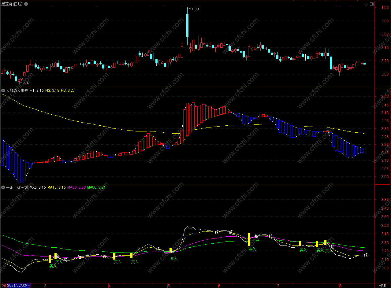 (神仙看盘 通达信大趋势大未来指标公式 副图 源码)