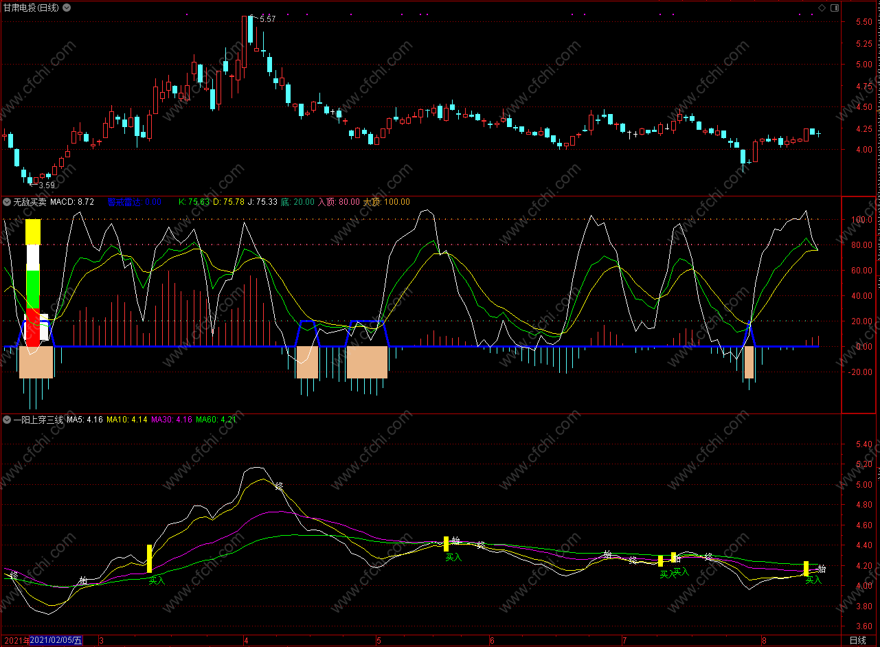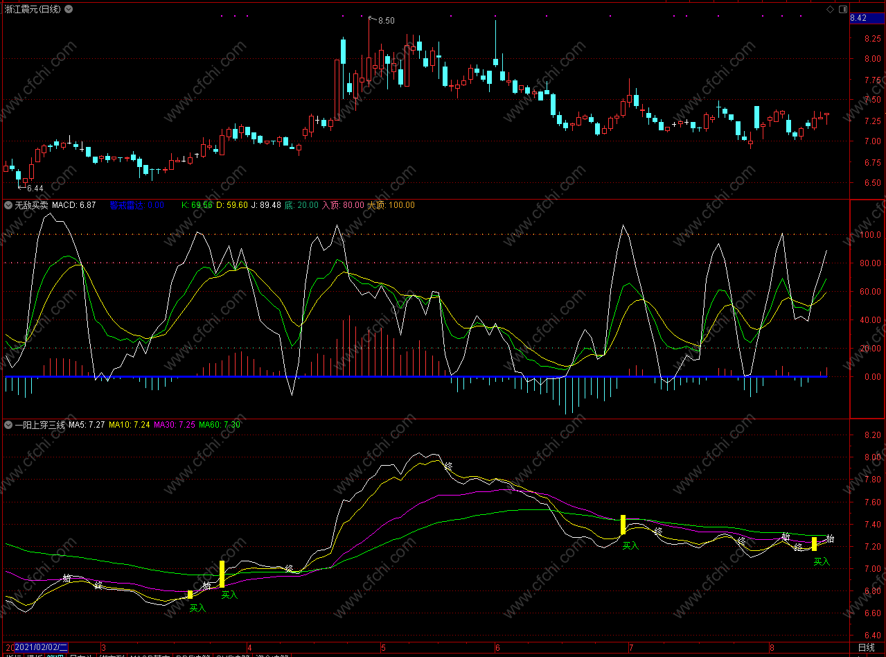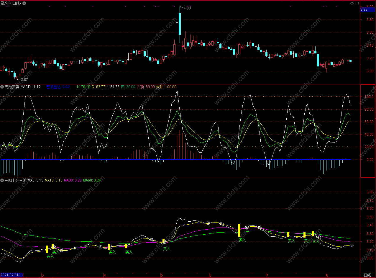 (K线形态结合MACD红柱变化 通达信无敌买卖指标公式 副图 源码)