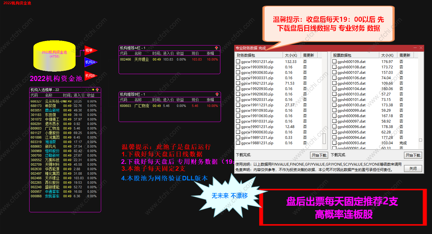 优点1:股池每天固定推荐2支 只需盘后 19:00以后下载 通达信专用财务数据