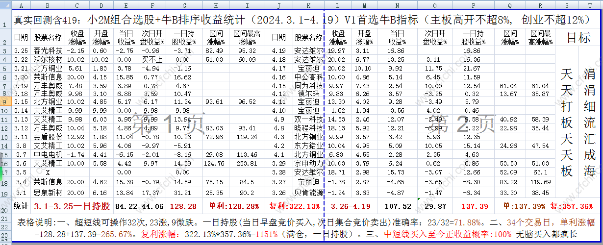5.先剧透一下3.1-4.19的收益统计,见下图,不吹不黑!不争不辩,以实际数据说话!这个牛牛排序指标,也起大作用!