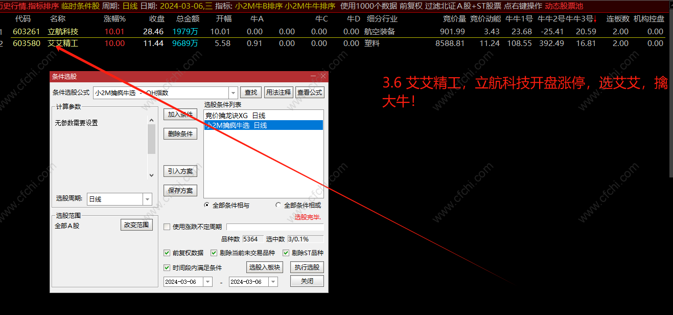 4.案例中篇幅所限,只展示几只《擒疯牛套装》选出的的票,3.1思泉新材、3.6艾艾精工、3.7金盾股份、3.12万丰奥威、3.21北方铜业、3.27宝丽迪、3.28安达维尔。随便一只持有至今,都有接近100%的利润。我说好的选股方式,一个半月复利涨幅1151%,也就是11倍,你信不信?4.24我会把3.1-4.19的所有交易日截图展示出来。眼见为实!不会挑着或者跳着展示。