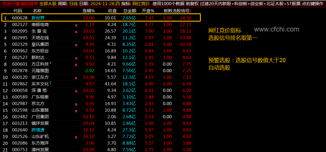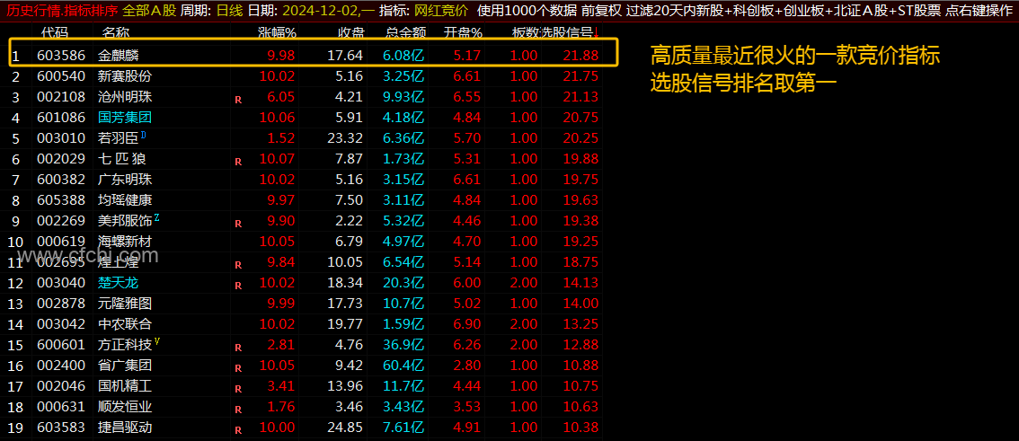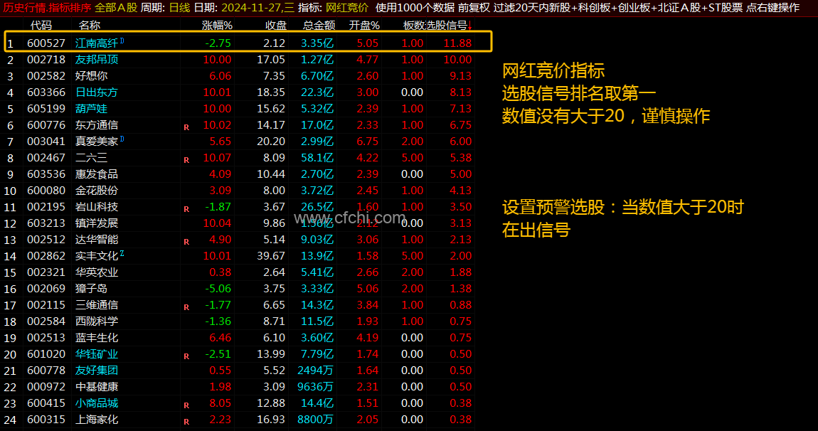 (通达信【网红竞价】指标1排序1预警选股高质量最近火爆的网红竞价指标)