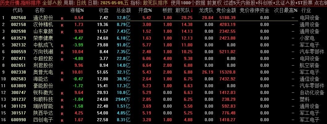 (【敢死队排序】通达信敢死队排序指标,主抓连扳 一进二 适用于短期题材股和热点股的筛选)