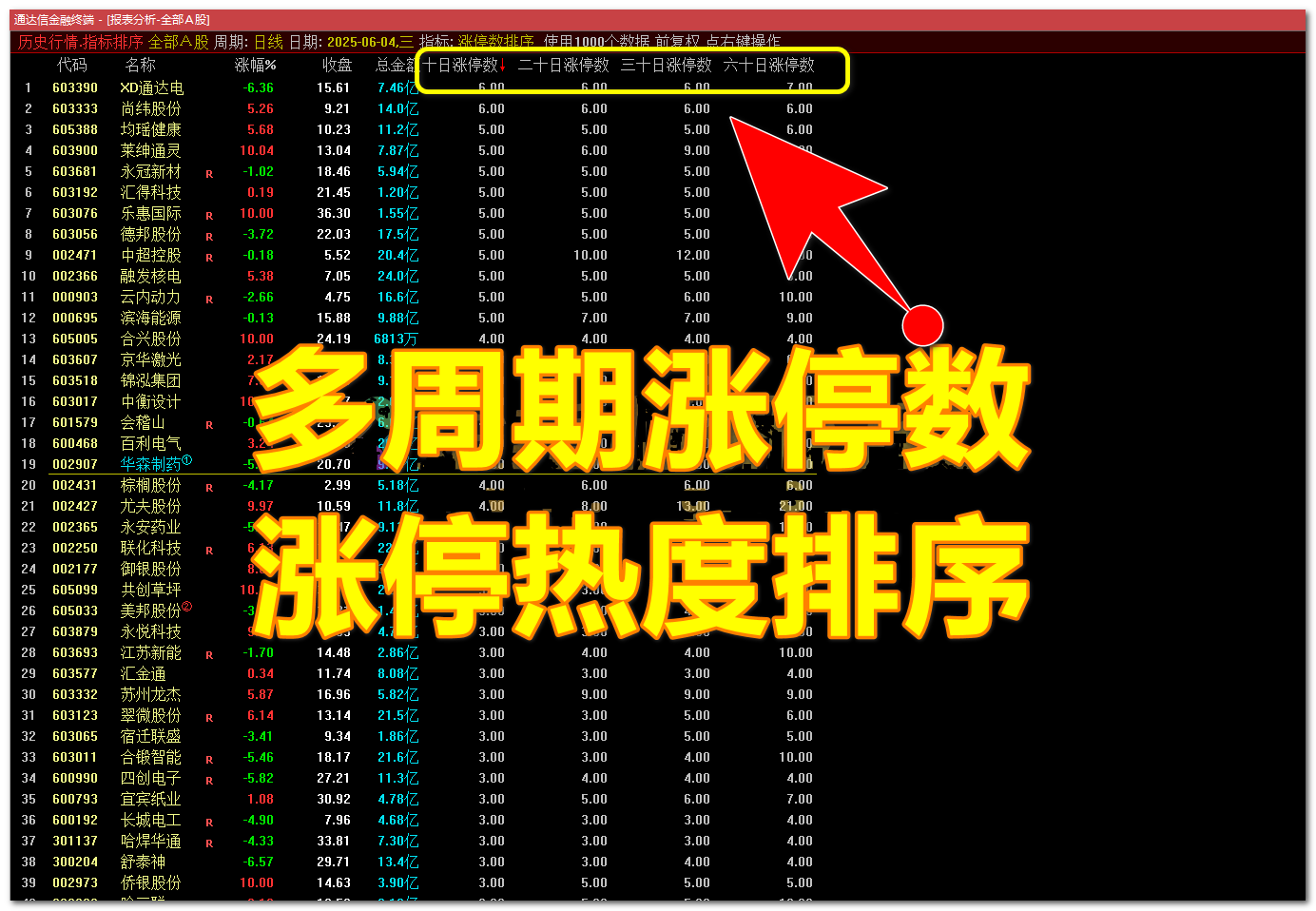(【涨停数排序】通达信涨停数排序指标,多周期涨停热度排行!源码)