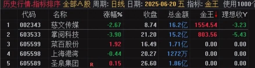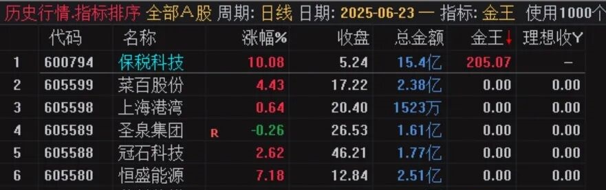 (【金王排序】通达信金王排序指标,源码开放)