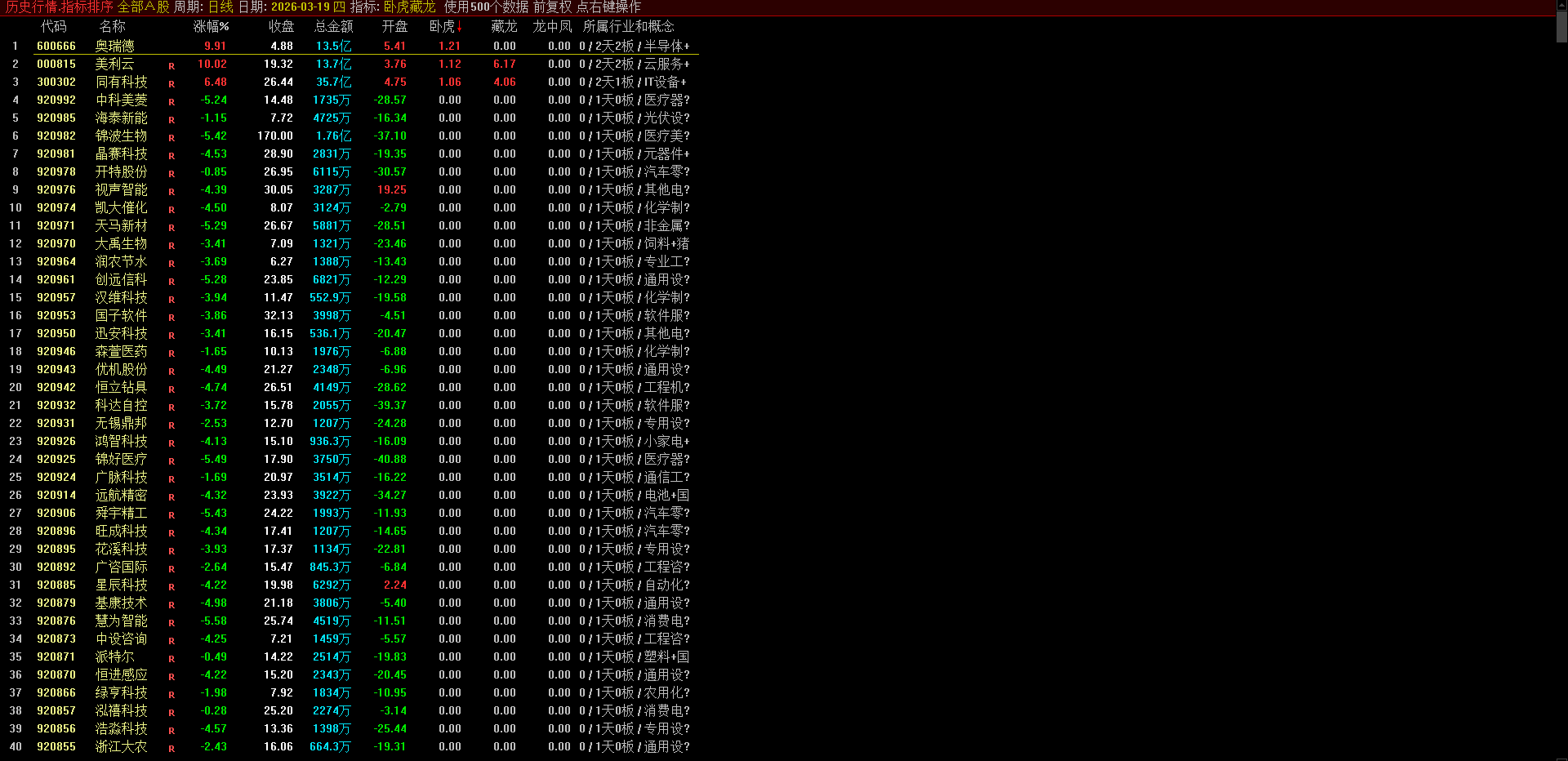(通达信【卧虎藏龙】1排序1选股 聚焦于捕捉首板涨停后、第二天有望继续涨停(即一进二)的潜力标的)