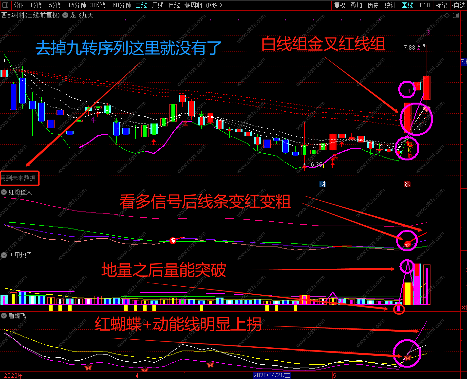 3.通过天量地量倍量及量能突破来确保上升趋。
