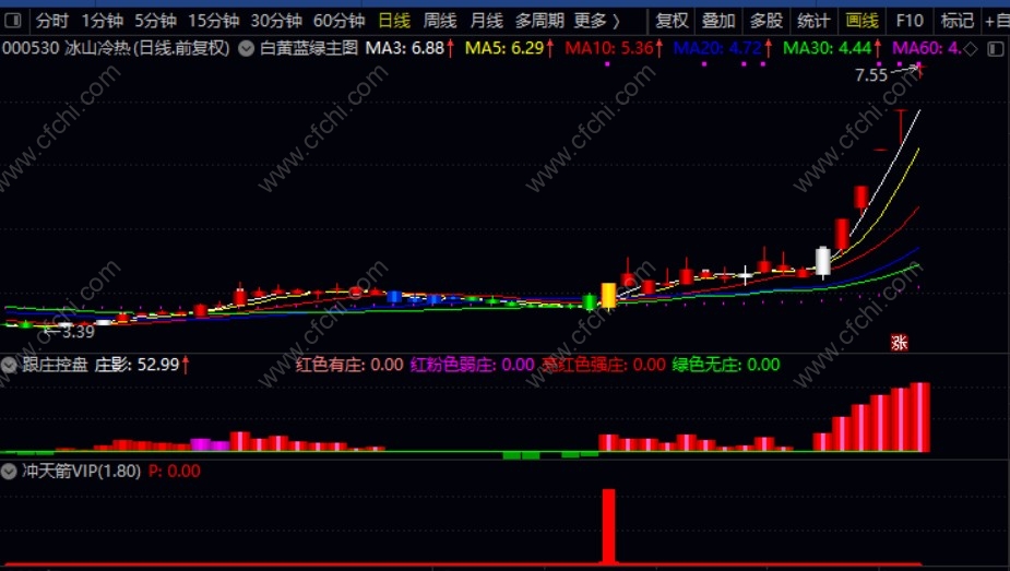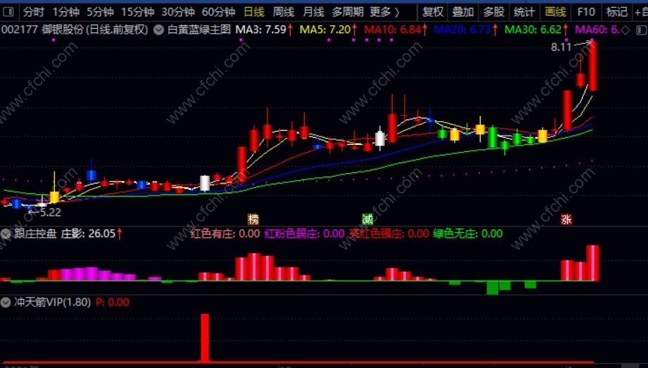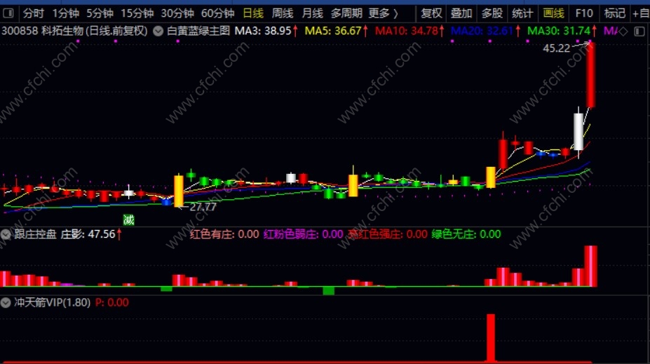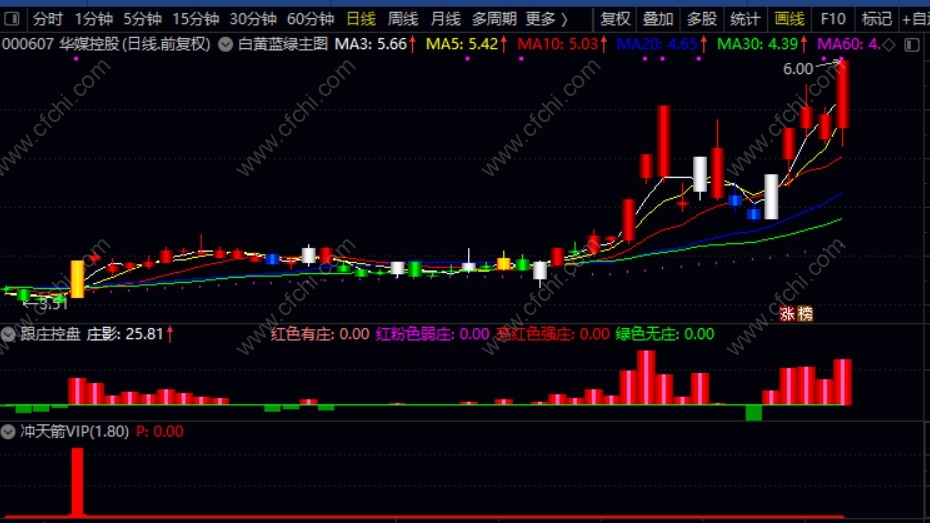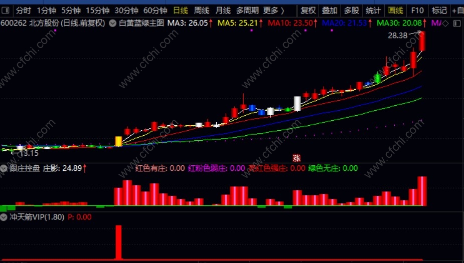 (【跟庄冲天箭套装】白黄蓝绿主图+跟庄控盘副图+冲天箭VIP,非常厉害的组合,选股操盘一体化)