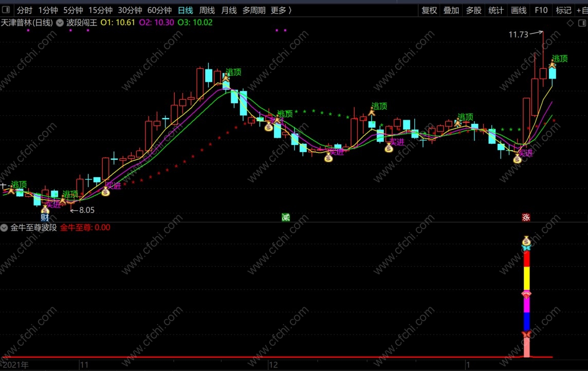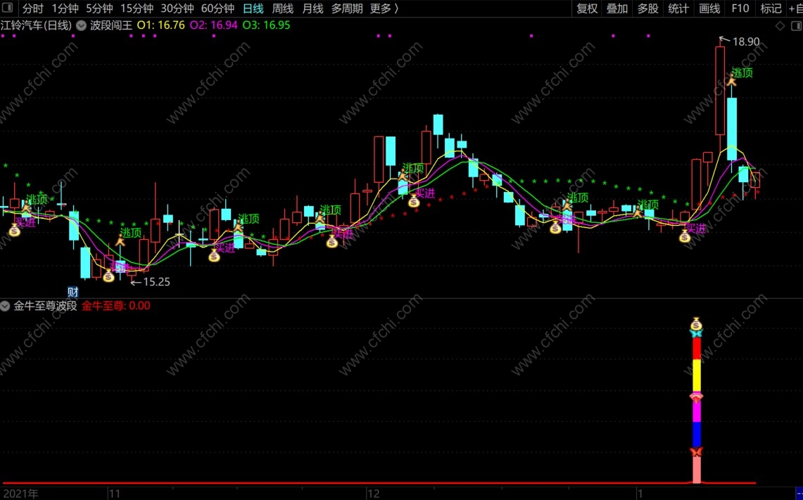 【金牛至尊波段】指标不含未来函数,这是一个好的指标的必要条件。指标收盘信号确立之后,信号不会再变化,大家也可以放心使用。指标信号充足,一个月大约有几十个信号,足够大家操作哦,不会因为信号太多而无从选择,也不会因为信号太少而没什么操作机会。