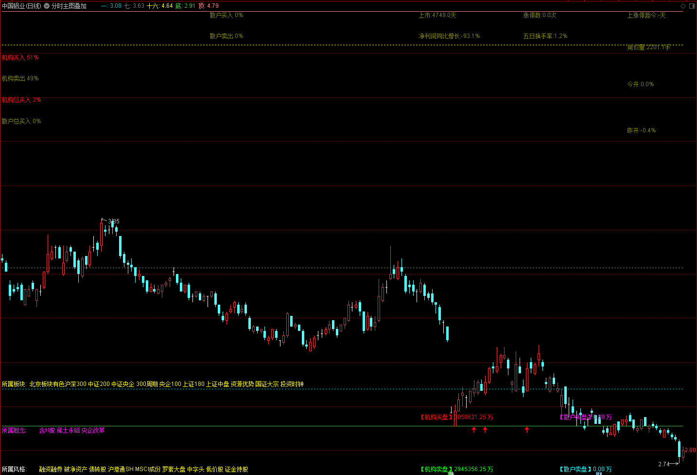 适合追涨停的炒股技巧,通过数值标注机构买入、机构卖出、机构总买入、散户总买入(量不完全准确),数值均随盘中动态变化,便于观察庄家洗盘动作。