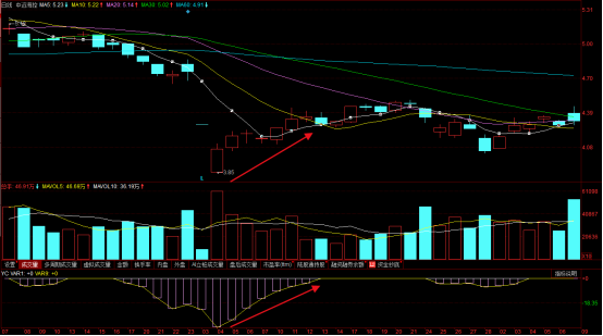 当红色柱子慢慢变小,阈值趋于零的时候,这就证明应该在这时候抛售股票了,因为接下来股价会呈现下跌的趋势,我们需要等待下一个红色峰值出现才买入
