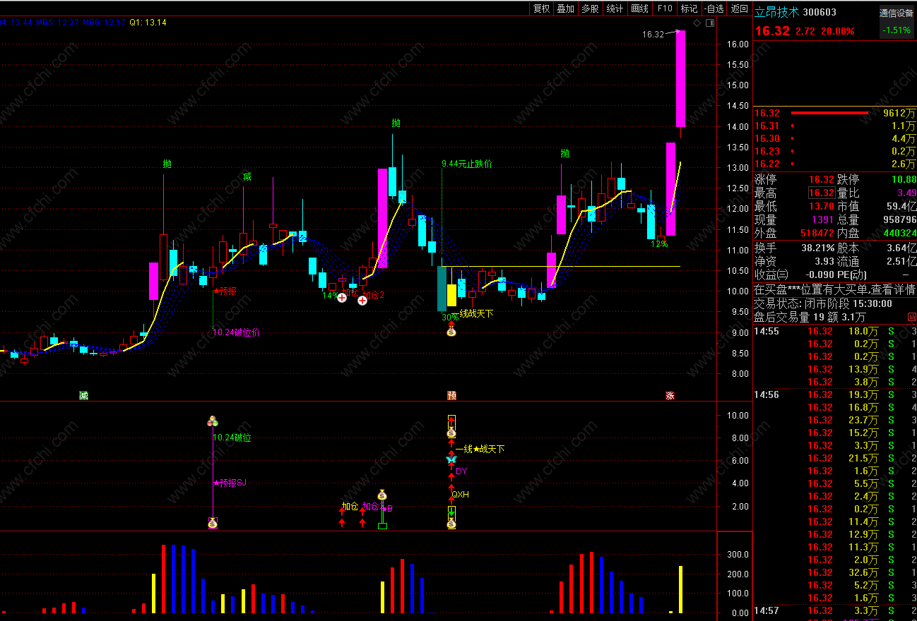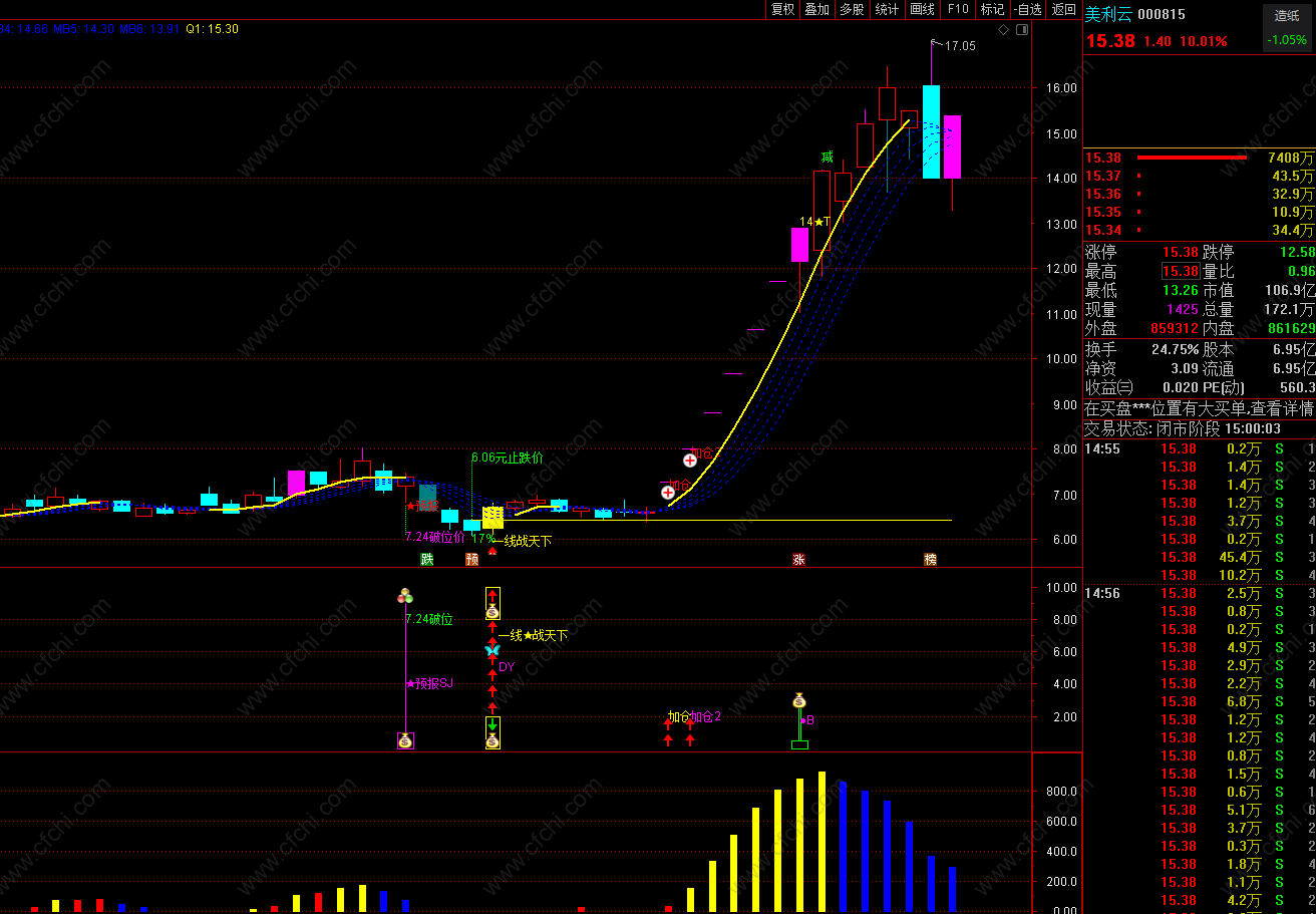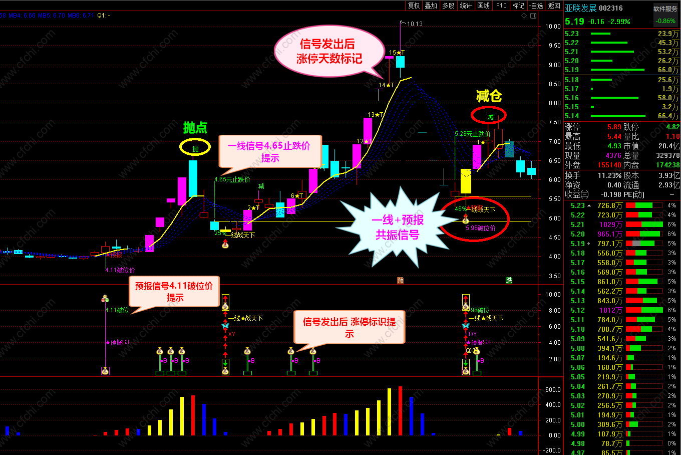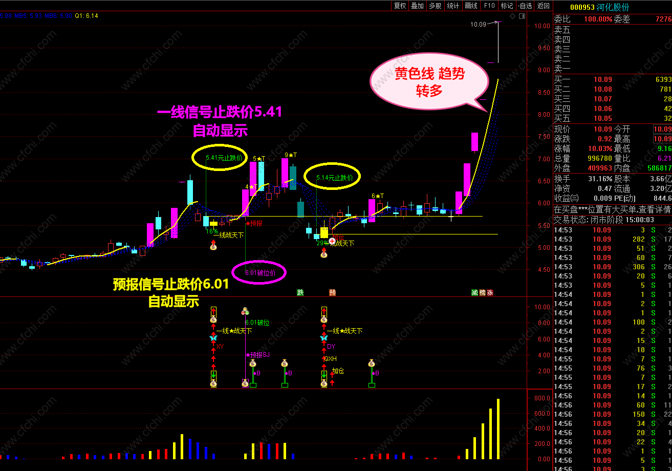 自动计算 预报涨停指标发出信号后 主图与 副图中 显示 参考破位价