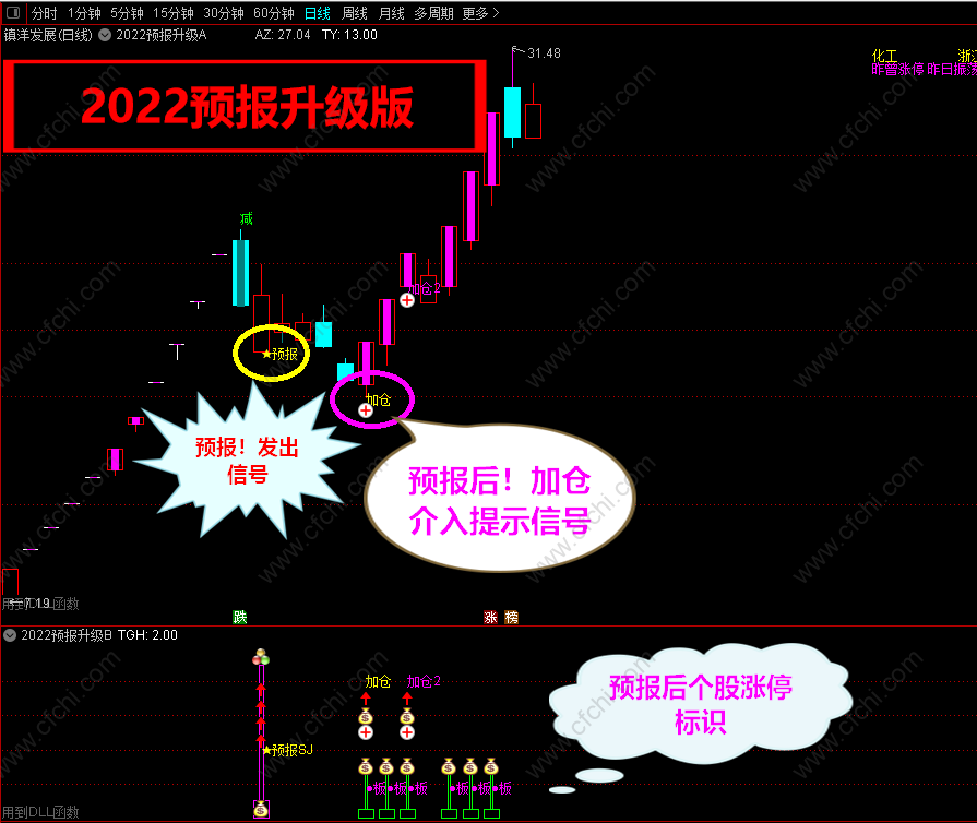 本指标包含:一线战天下 与 预报涨停指标 所有功能的基础上 额外增加两大功能