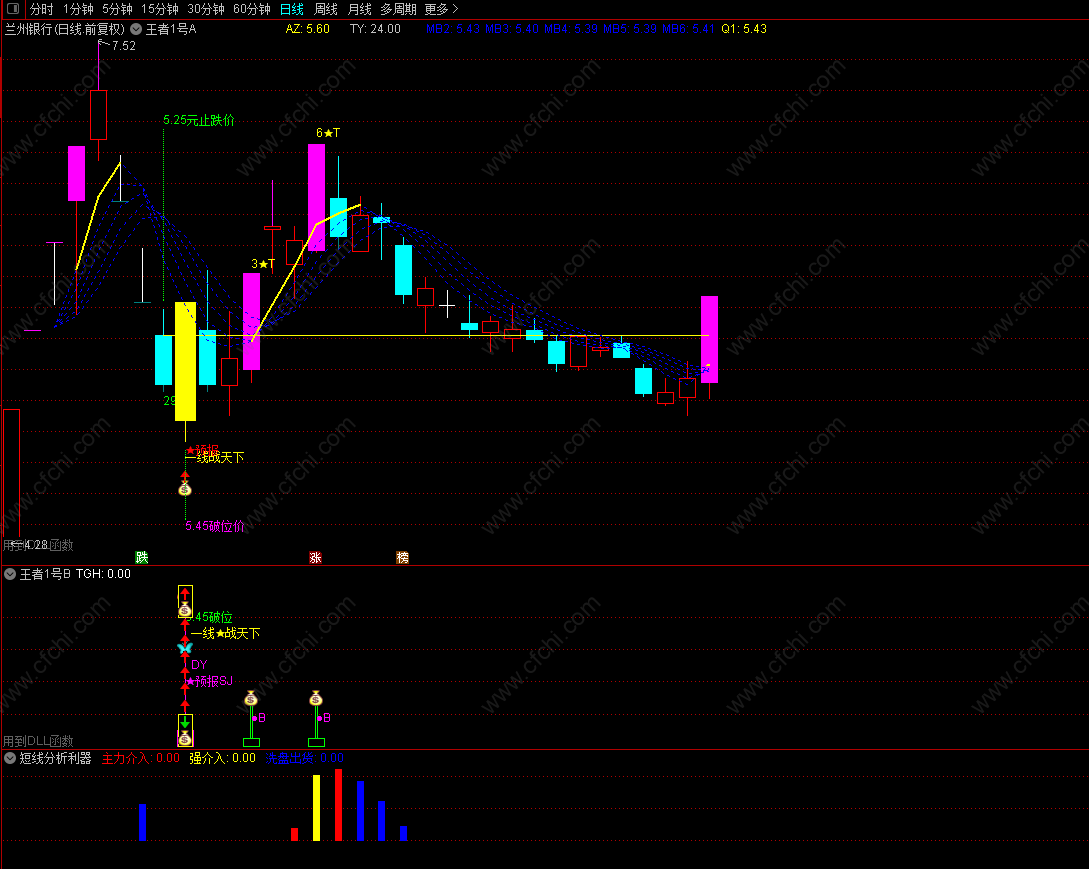 功能1: 自动计算 一线战天下指标发出信号后 主图中显示 他的参考止跌价