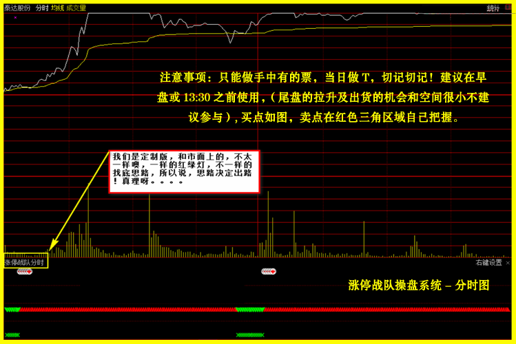 特别提醒#2:作为本次指标的特色,也为了向你展示涨停战队操盘系统的威力,其中精彩敬请实战中体验。