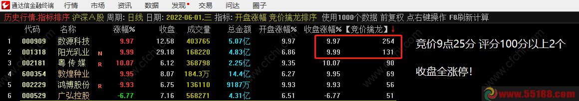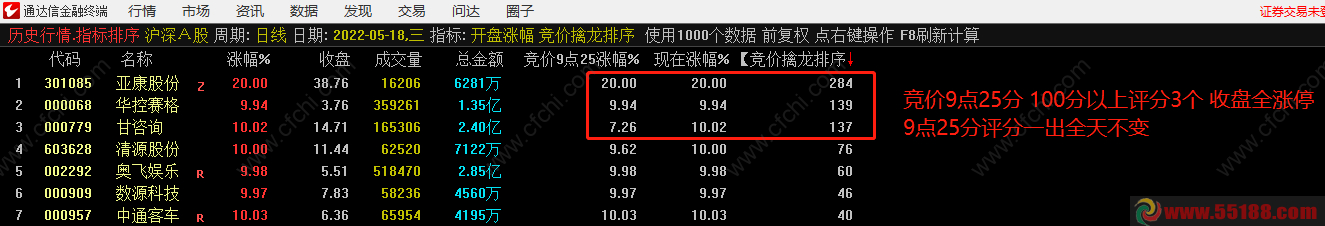 在集合竞价9点25分出排序评分(100分以上为当日较大概率涨停标地)【排序评分9点25分锁死 一天都不会改变】