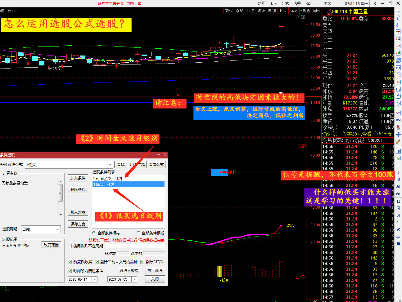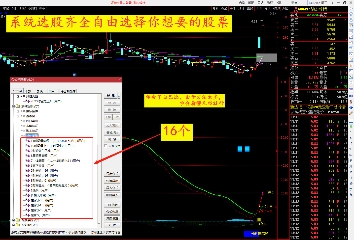 温馨提醒:本系统包括强大的功能,先学习好基础原理,然后针对性选择股票,系统送选股公式。然后信号出现,不同的公司有不同的表现。但如果你理解了操作原理,短期强势股一定能找到的。如果发现不明白的地方,尽量咨询作者原理,绝对不要在不明白就操作股票。指标公式仅供交流学习,不作买卖依据,不作任何投资建议。 投资有风险,入市须谨慎!