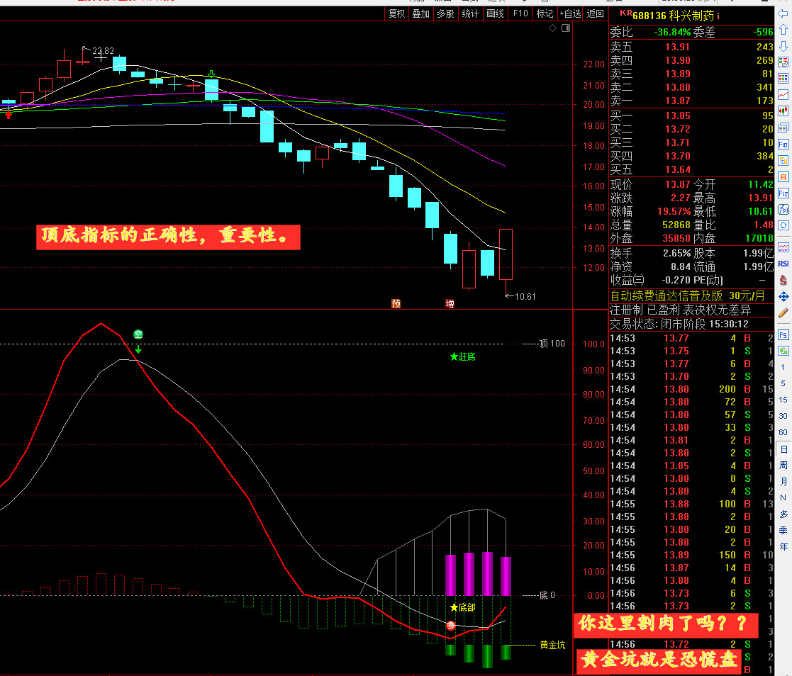 所谓顶底指标,我们肯定能了解顶在哪里?,底在哪里? 当然这个是日级别的周期,如果能掌控好中线周期,操作起来更得心应手。但不用怀疑顶底的作用。或许底部指标千千万,抄在半腰真不少。但我们开发的产品,重点克服这样的缺点,不然5元与5000元的系统。没有区别了。当然经过上述个例的学习,你完全可以知道,我们产品的精准性。有精准的系统,才能有好的收获。。。。