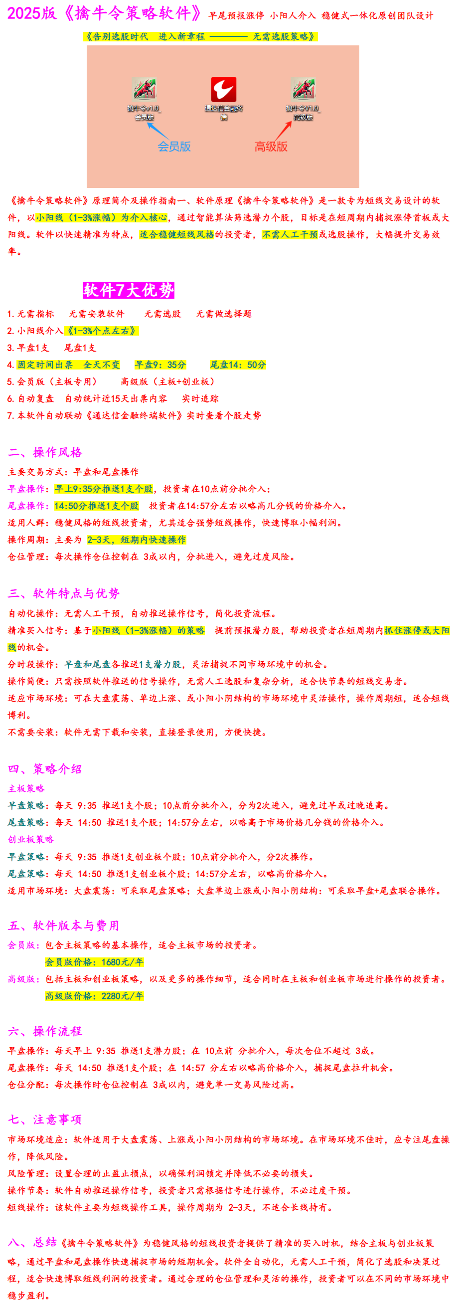 (2025版《擒牛令策略软件》早尾预报涨停 小阳人介入 安全稳健式一体化 原创团队设计)