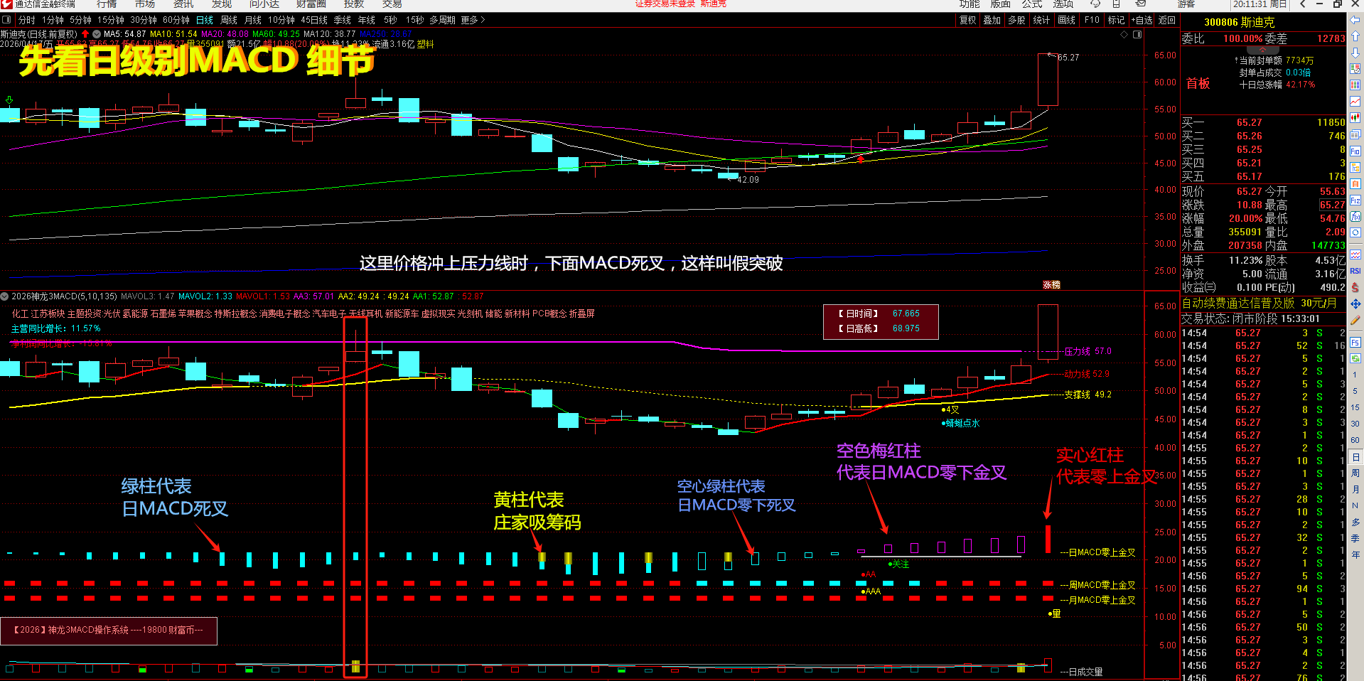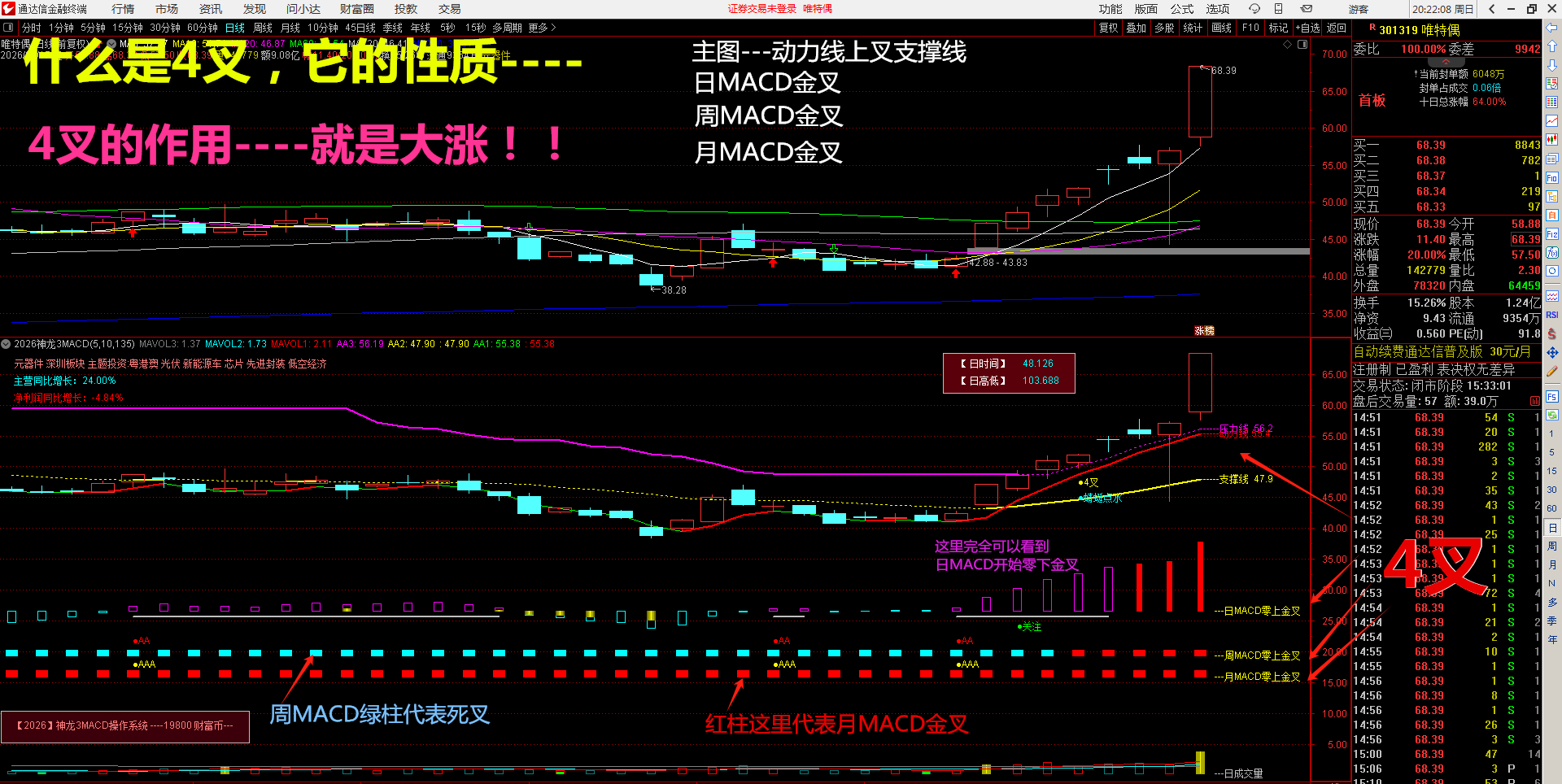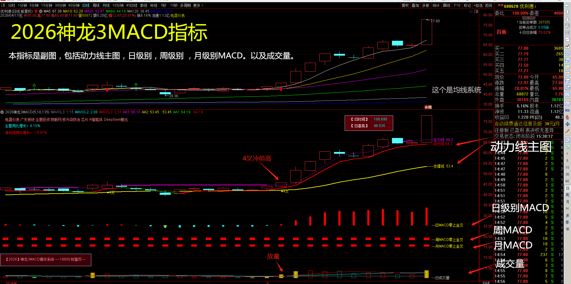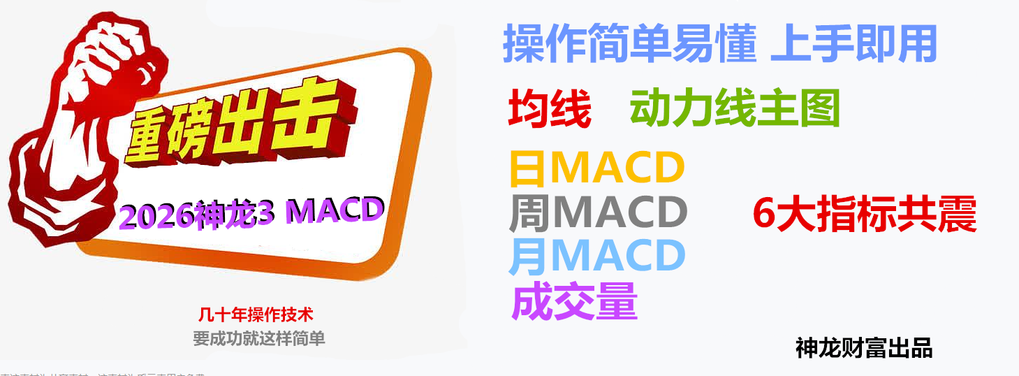 (2026神龙3MACD 日周月MACD共震同显 精加动力线主图看盘简单 配合成交量 短线暴力拉)