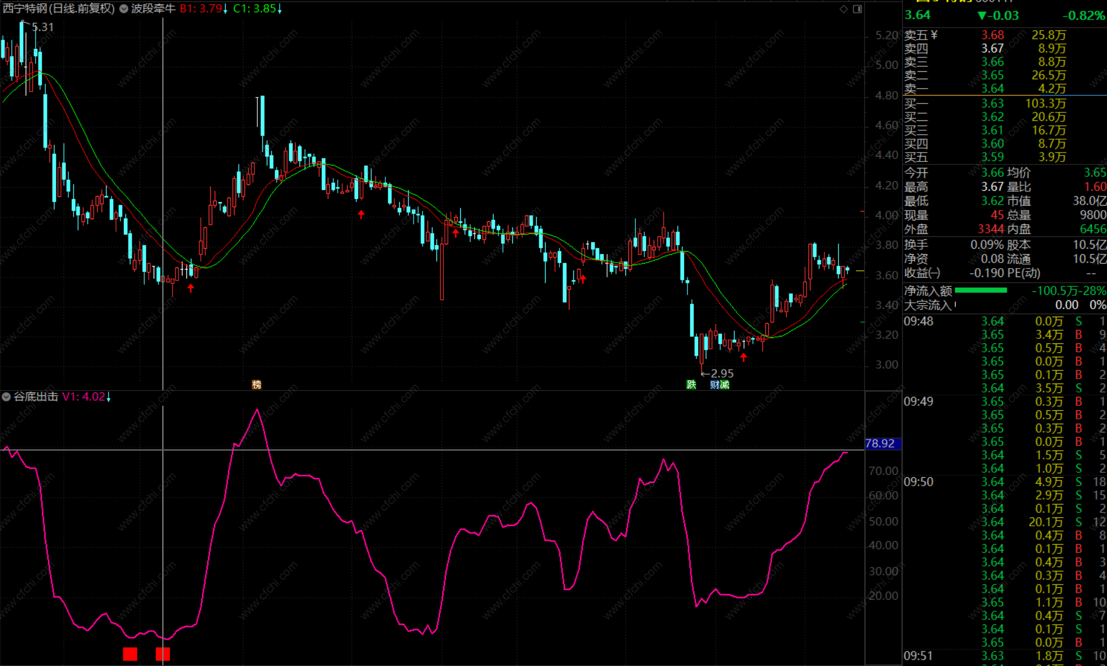 (潜龙在渊副图指标 源码 通达信 贴图通达信谷底出击+波段牵牛选股/主图/副图指标 贴图 加密 无未来介绍)