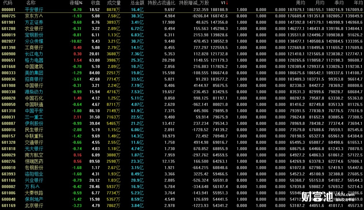 (北上资金指标,可以用来排序的指标,持股占流通比、持股增减数、日持股,周持股,月持股,季持股,年持股数排名)