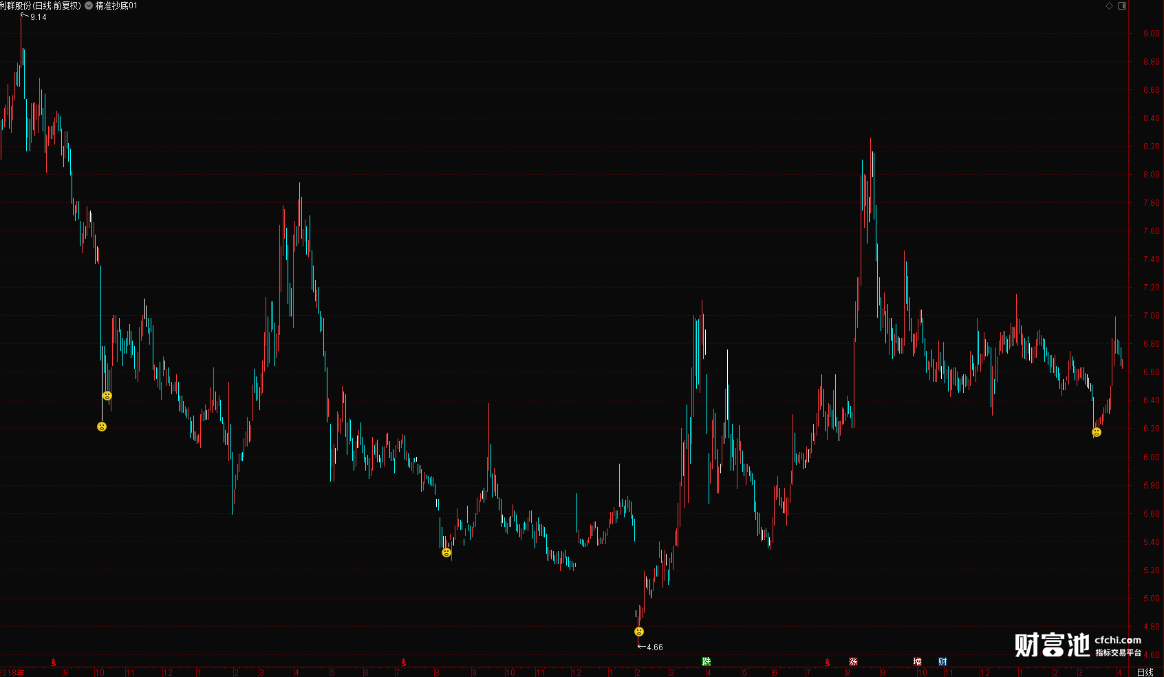 通达信〖顶底拐点预警〗结合短期跌幅和形态识别寻找低吸高抛时机