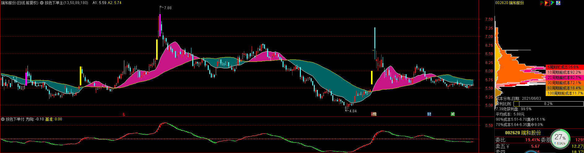 解套王组合指标之一,你有被套牢的股票吗,只要它不是死趴不动的,用此指标反复操作,终会解套