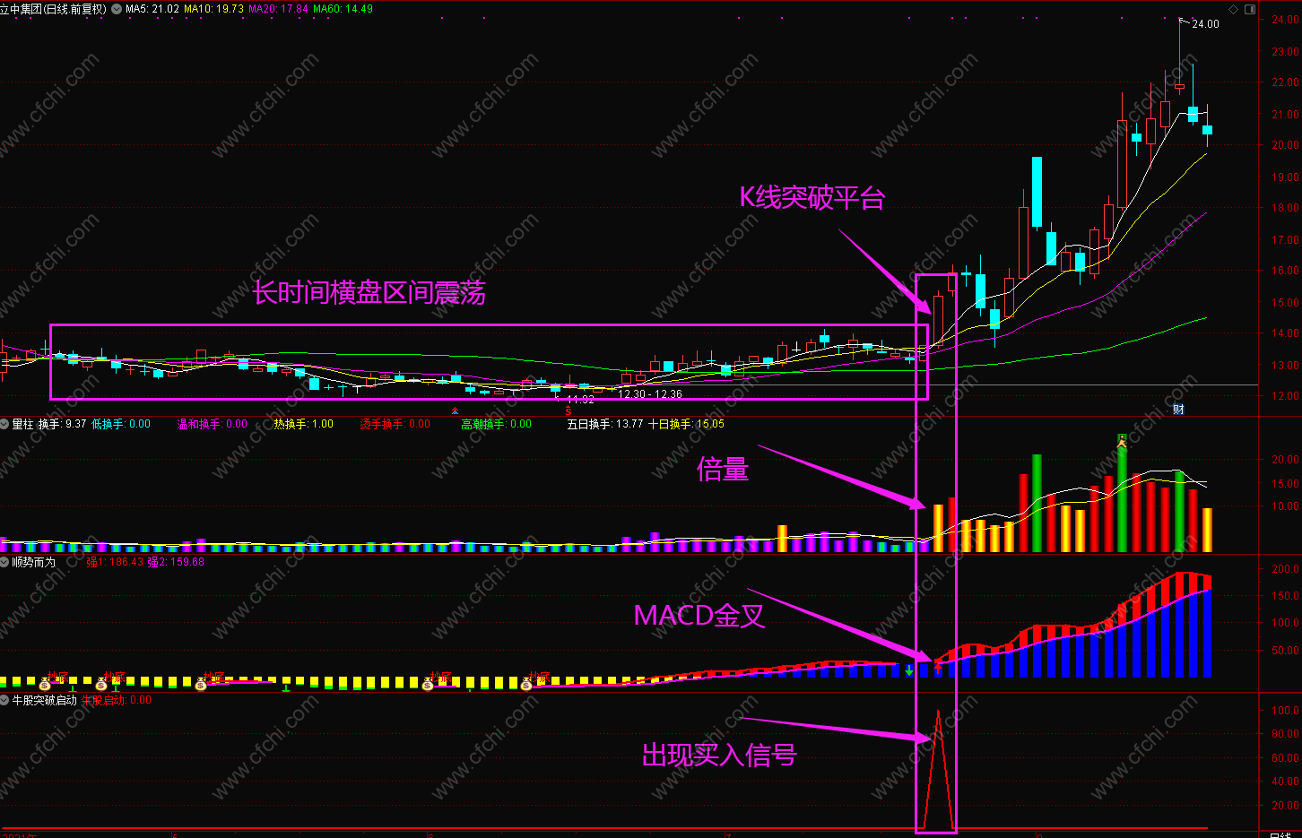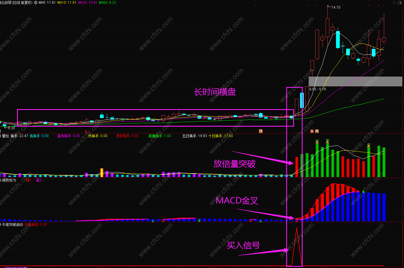 突破时候跟进,即可避免前期长期震荡的折磨,又不会错过主升浪的利润。
