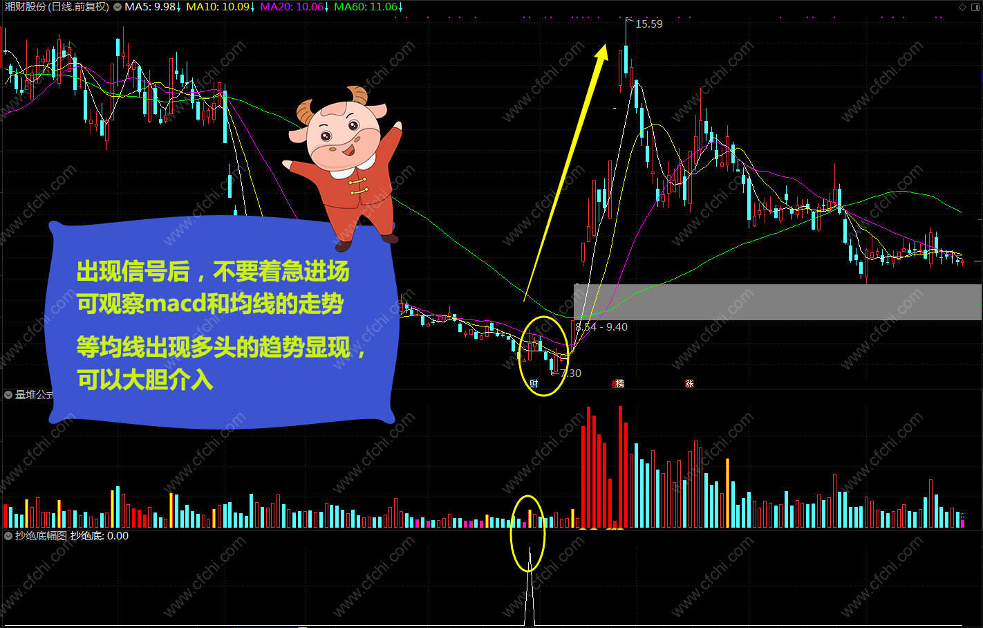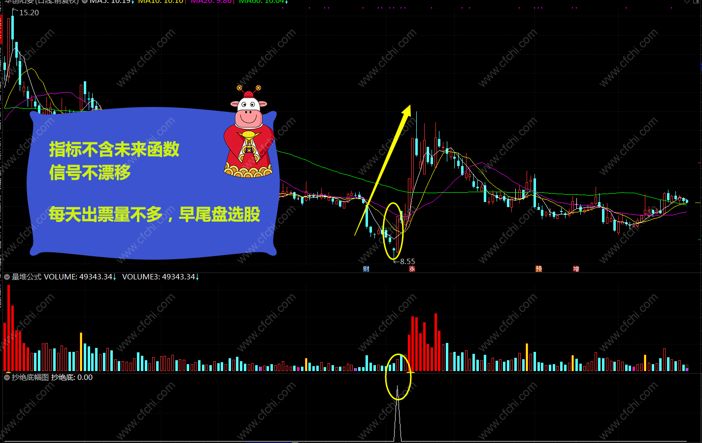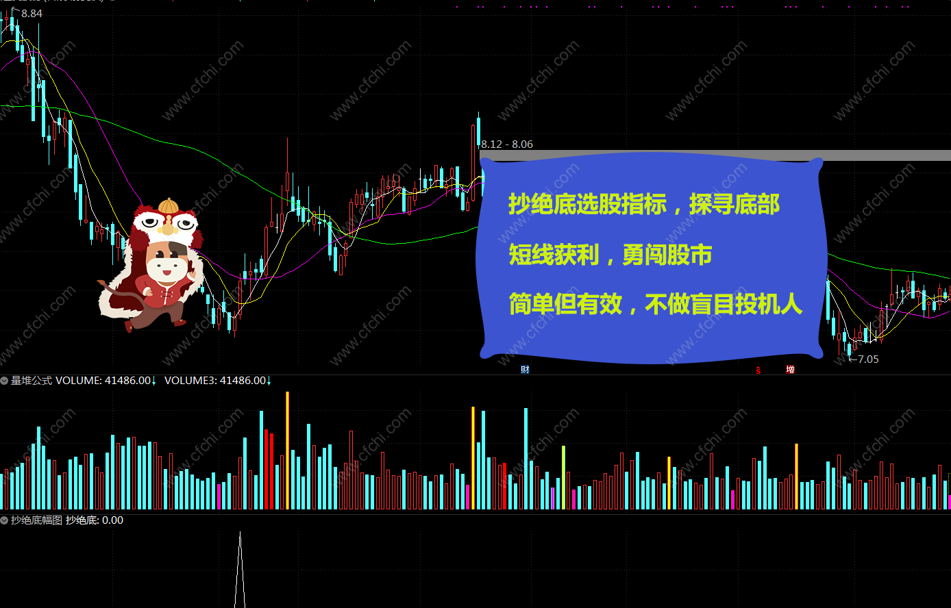 低位介入抄绝底副图是一个超适合新手的选股指标,信号简单,操作也简单。