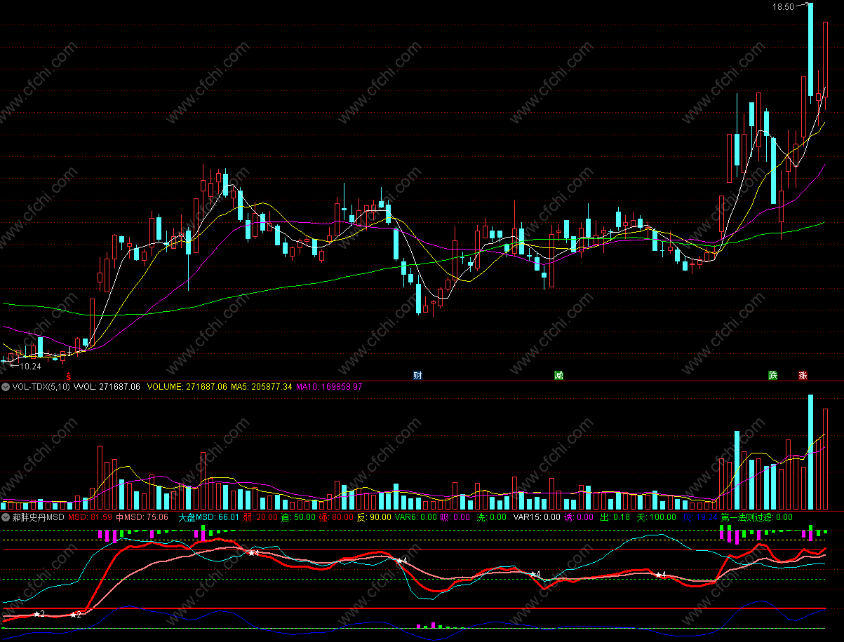 左:=IF(中大盘MSD>REF(中大盘MSD,1),中大盘MSD,DRAWNULL),COLORLIMAGENTA;